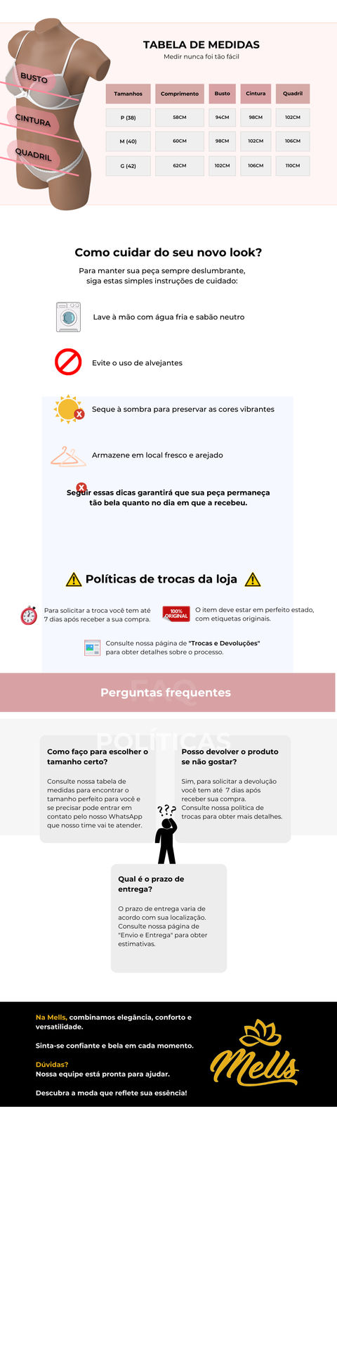 Mells Moda utiliza cookies e outras tecnologias para melhorar sua experiência de compra e personalizar anúncios, ao continuar navegando você concorda com nossa Política de Privacidade.