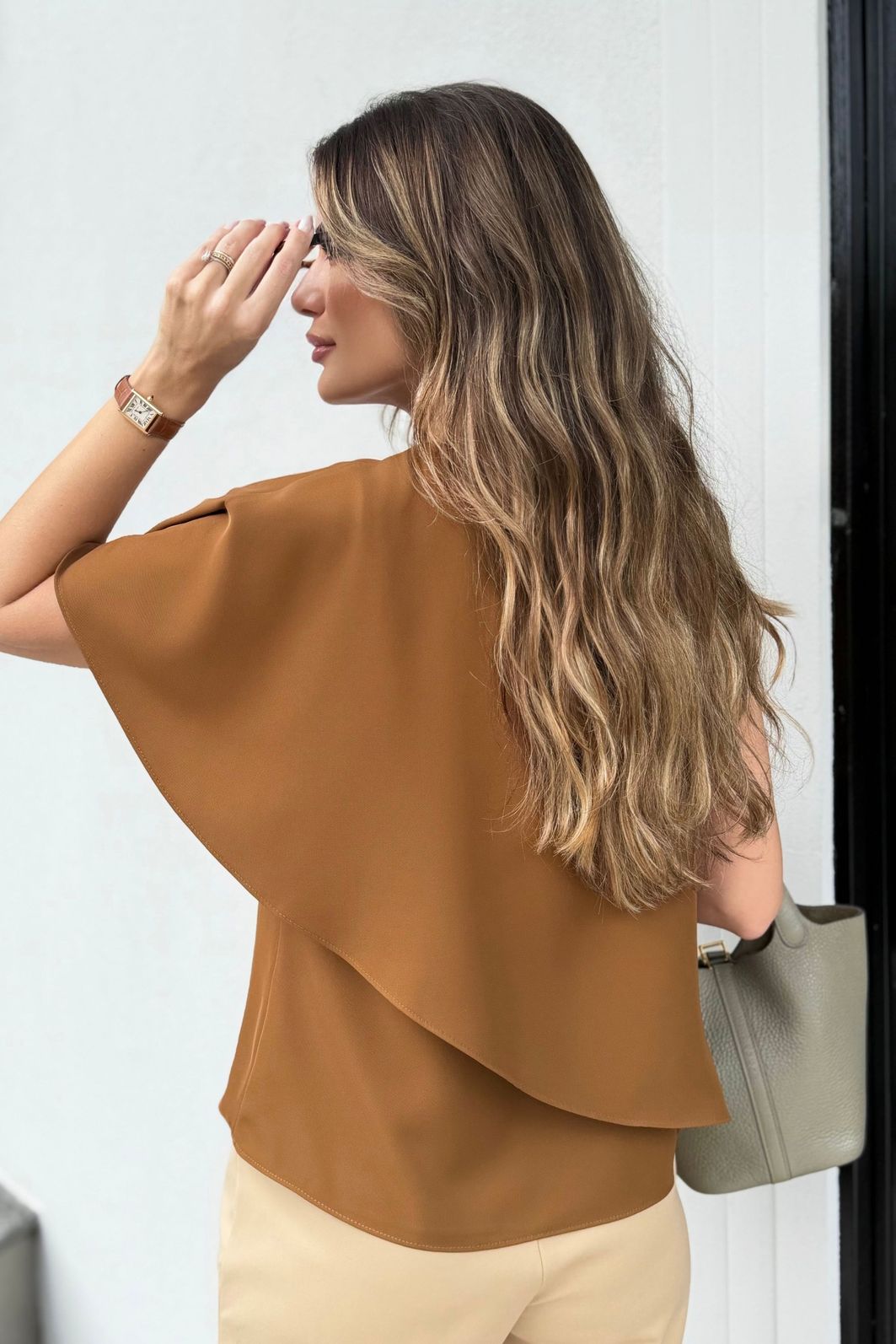 A Blusa Alfaiataria Manga Assimétrica permite combinações elegantes e modernas: