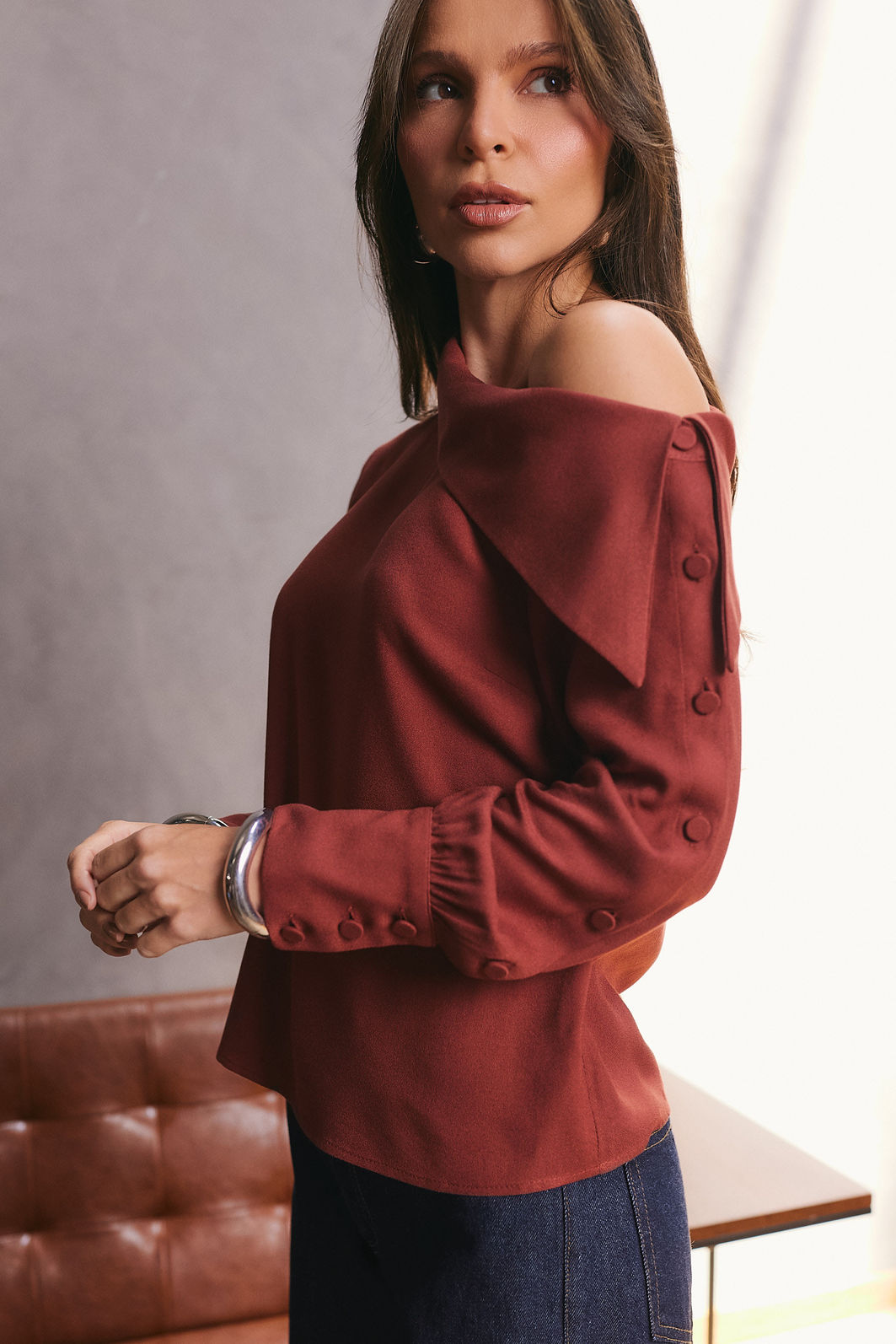 Blusa em Viscose com Decote Assimétrico é uma peça moderna e sofisticada que valoriza o visual com um toque de elegância. Confeccionada em viscose, possui toque macio, leveza e caimento fluido, garantindo conforto ao longo do dia.