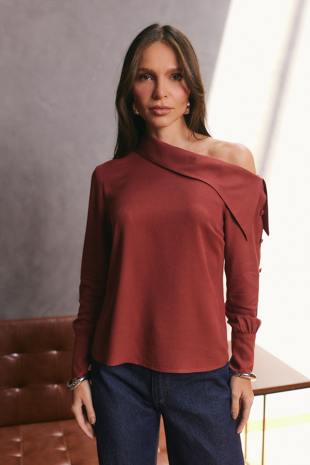O grande destaque da peça é o decote assimétrico, que traz um design contemporâneo e diferenciado, perfeito para quem busca estilo e personalidade no look. Versátil, pode ser usada em produções elegantes ou casuais.