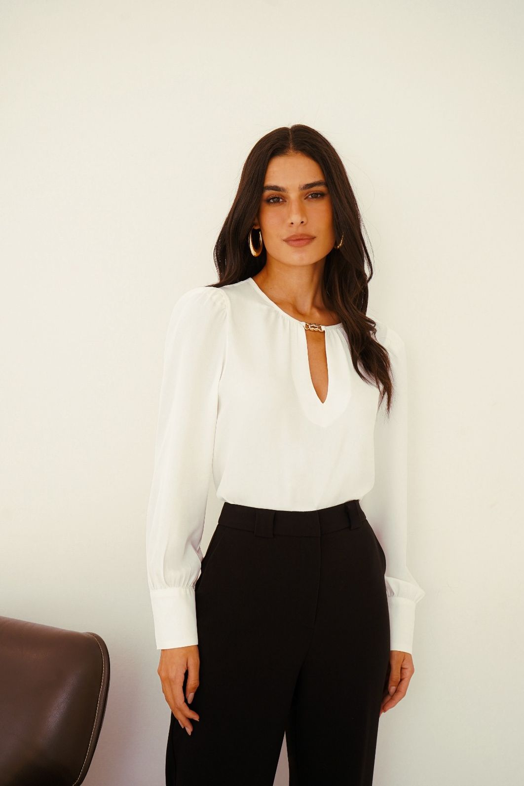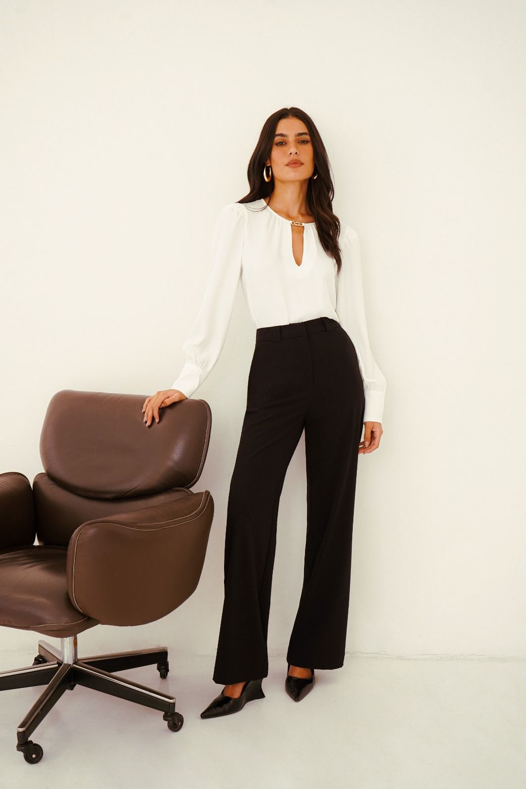 Confeccionada em crepe leve, possui caimento fluido e confortável, garantindo um visual alinhado e moderno. É uma peça versátil, perfeita para composições que vão do ambiente de trabalho a ocasiões especiais.