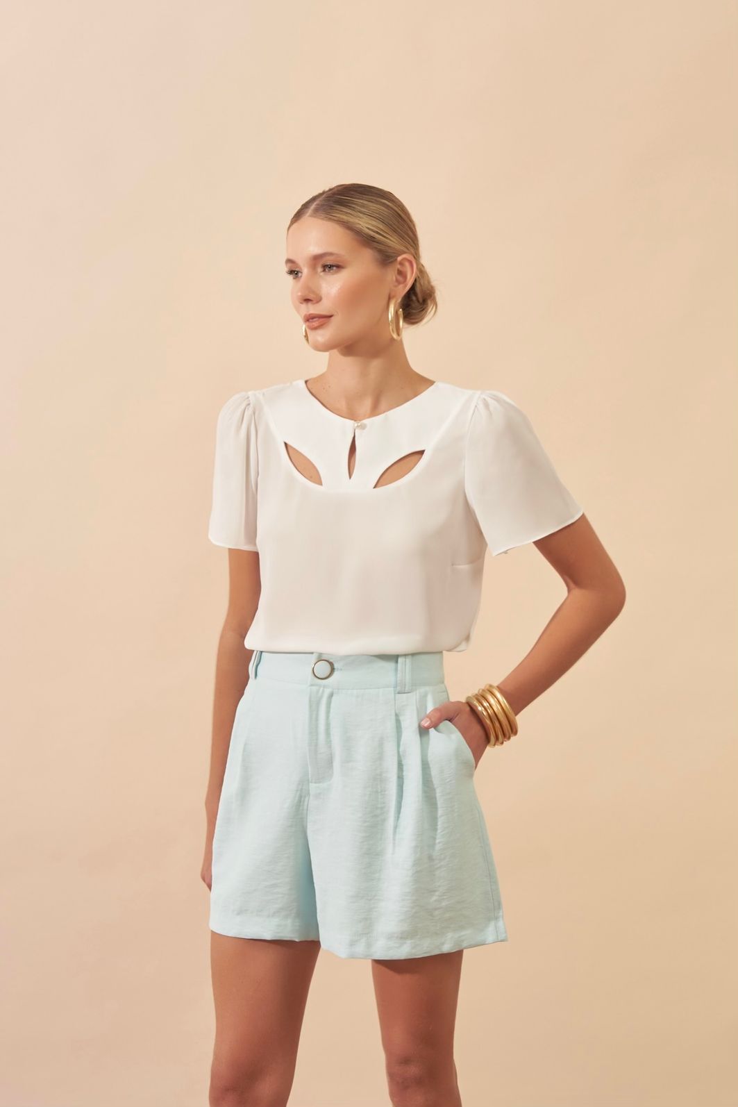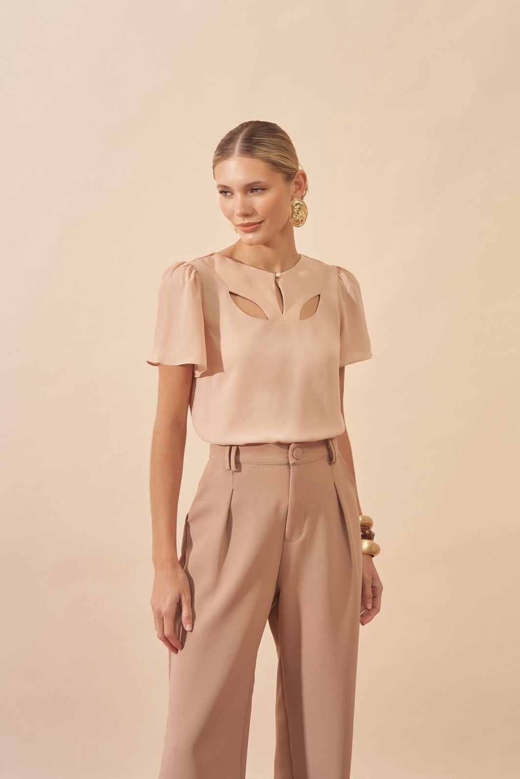 Blusa Crepe Decote Cut Out – Milalai é confeccionada em crepe leve, garantindo conforto e caimento impecável.