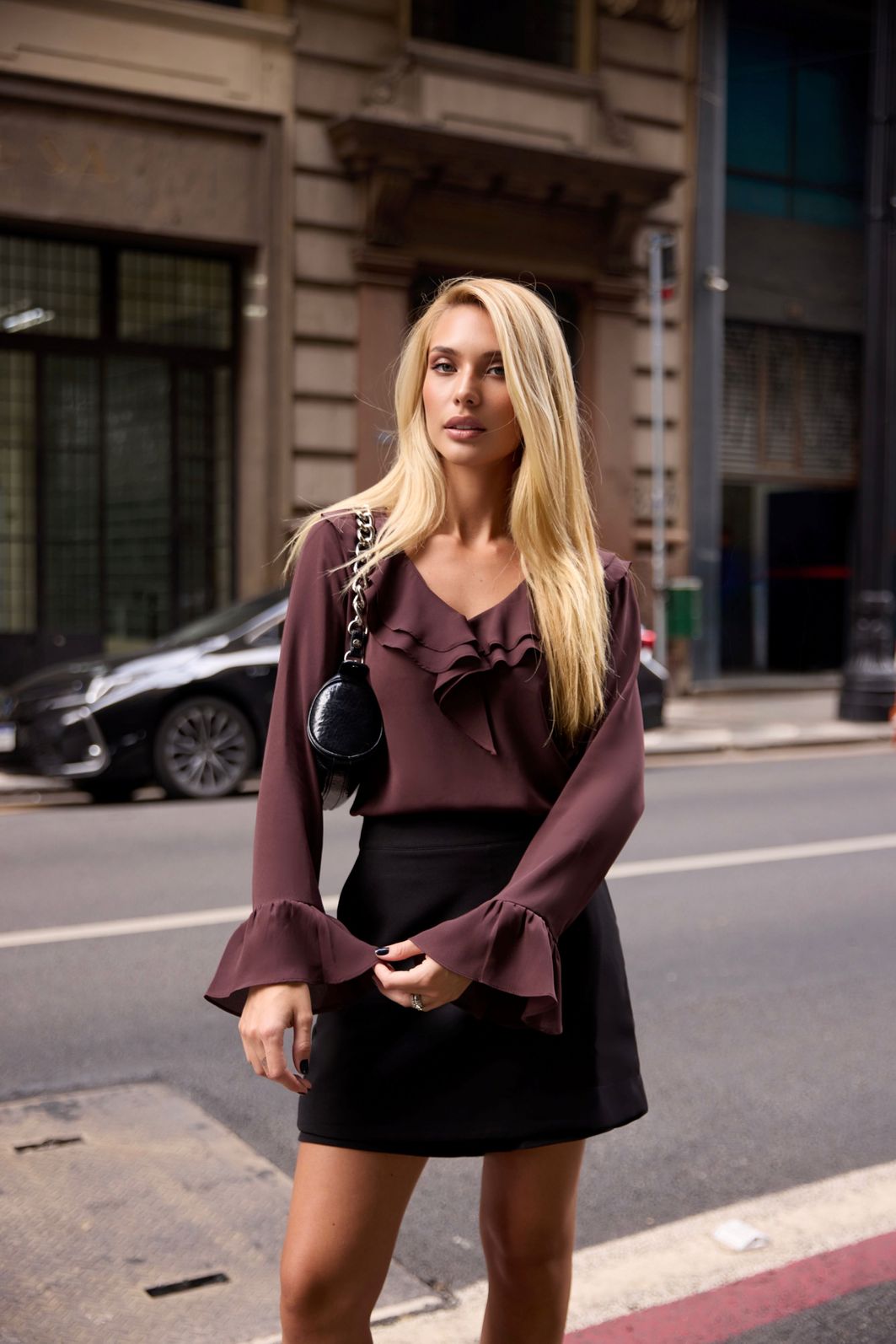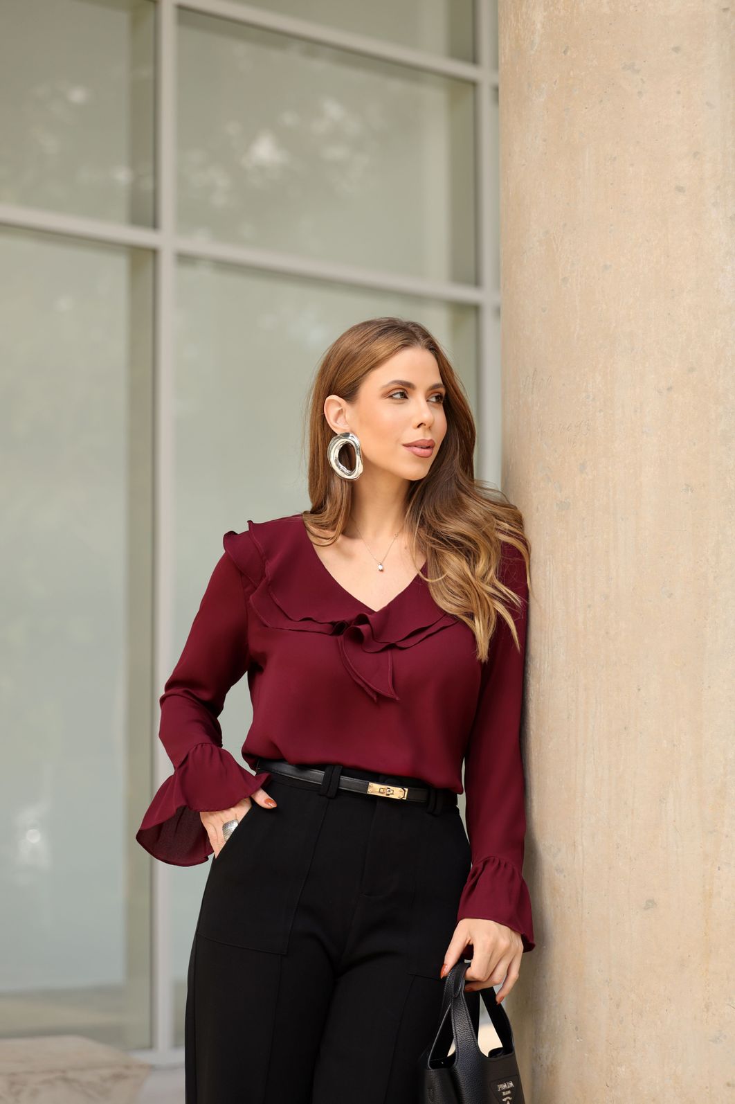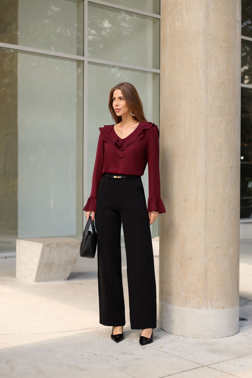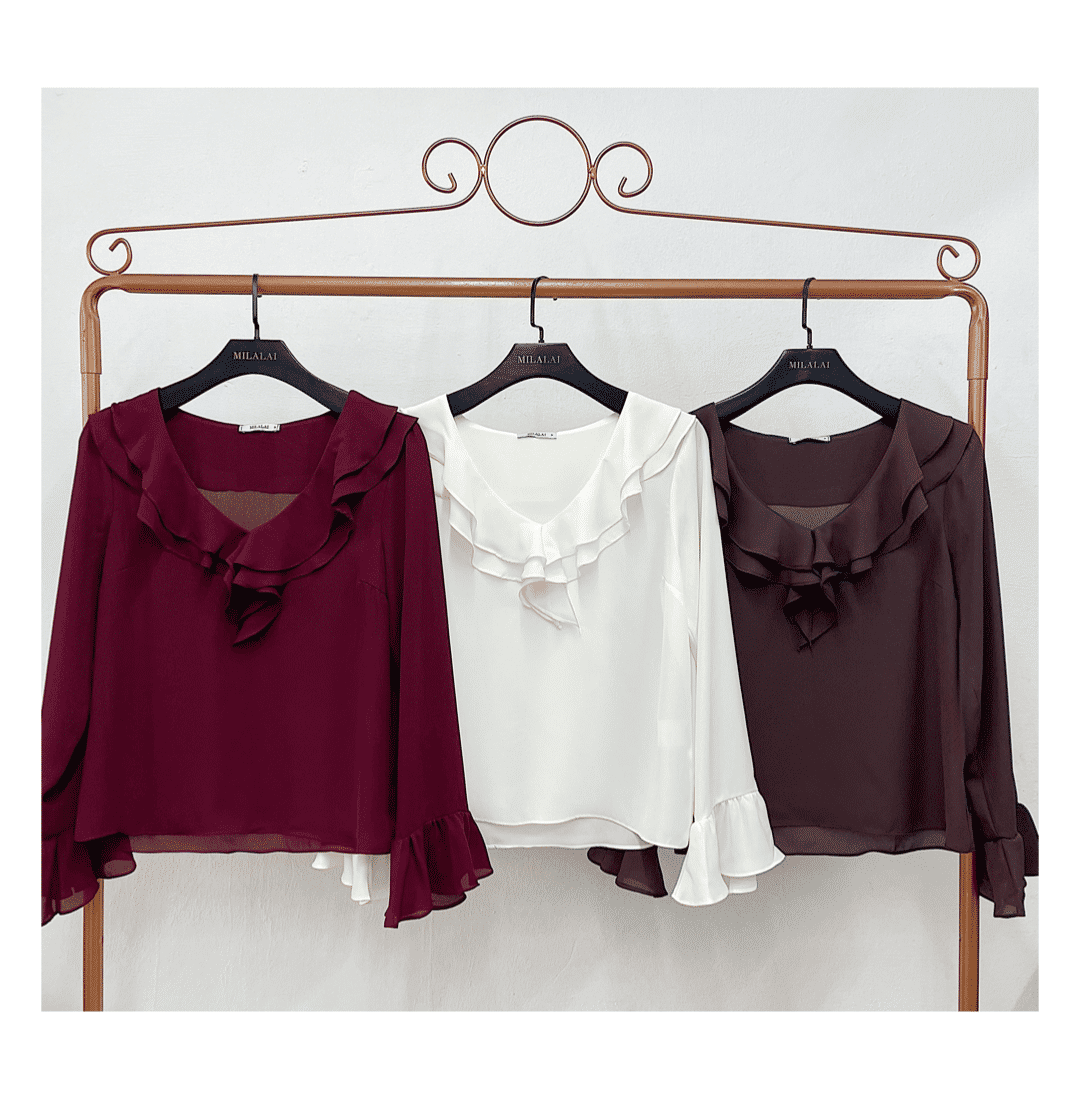 Blusa Crepe Decote V Babados - Milalai