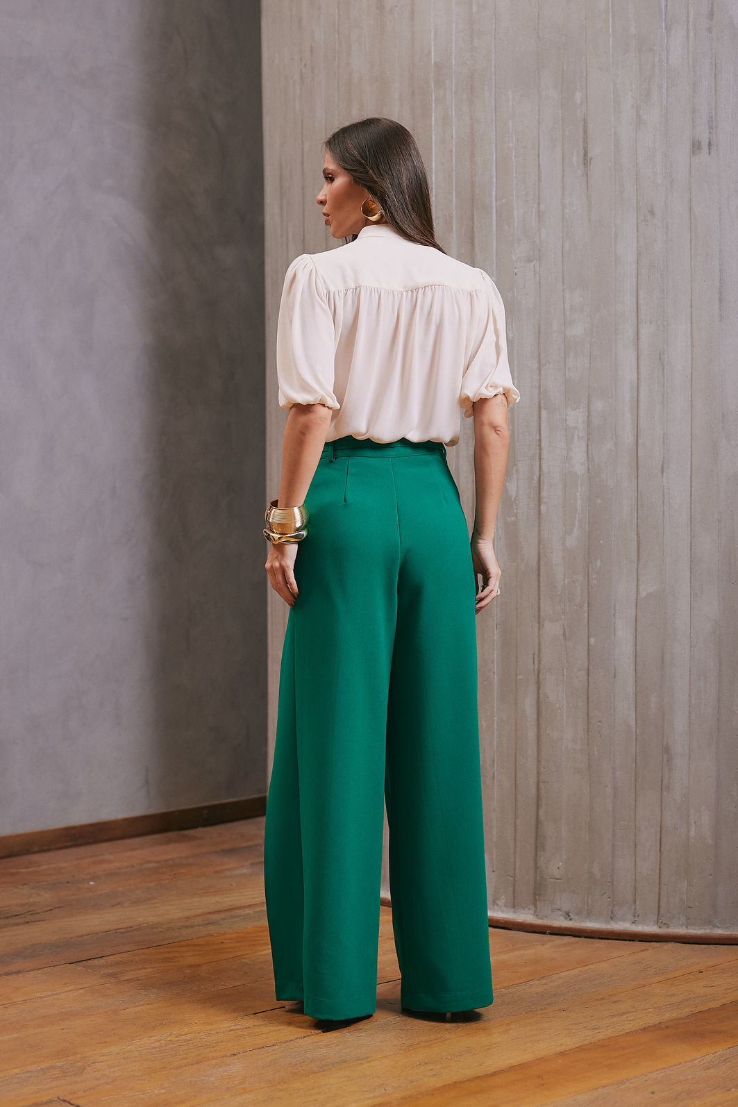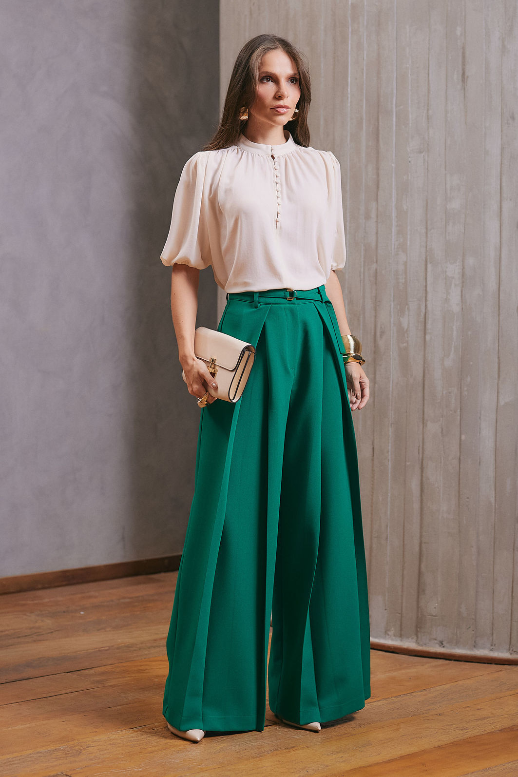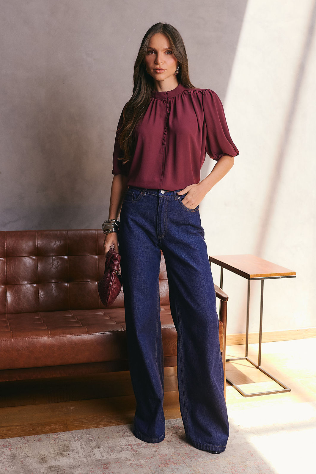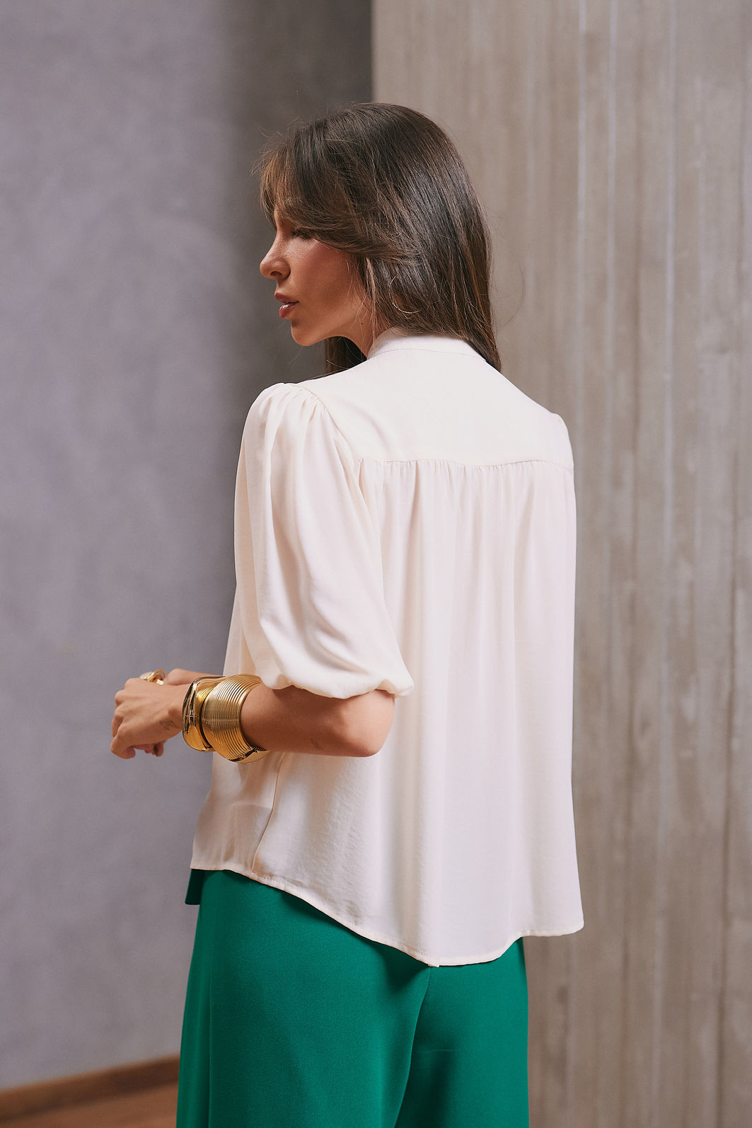 Blusa confeccionada em crepe com caimento fluido e leve.
