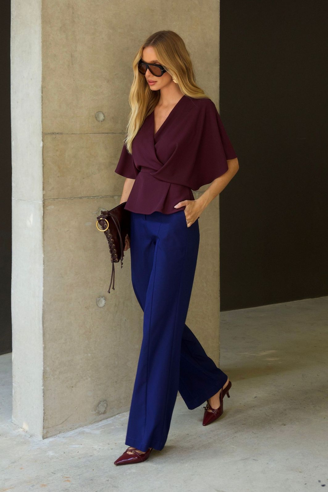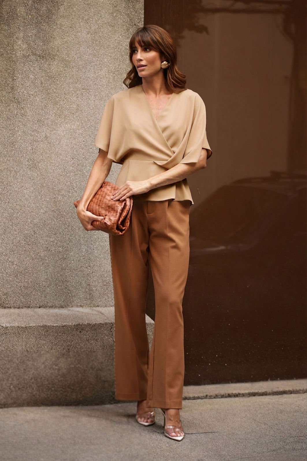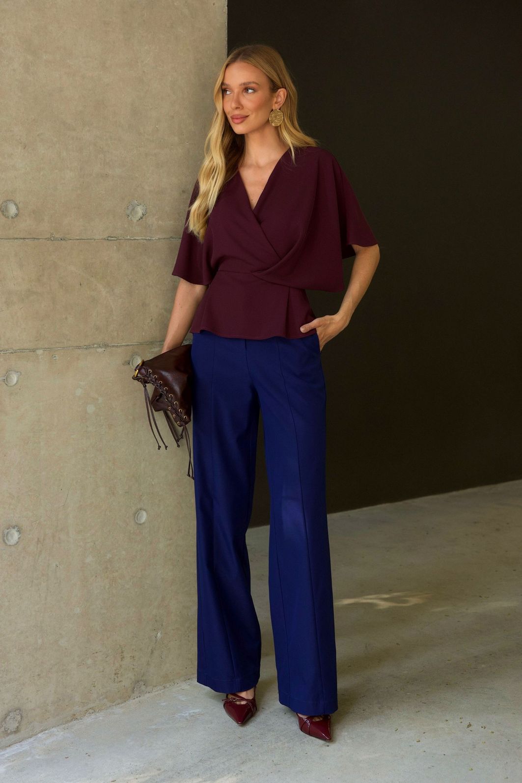 Blusa em alfaiataria com decote V e modelagem transpassada é uma peça-chave para um visual elegante e atemporal. Seu design valoriza o colo e alonga a silhueta, trazendo feminilidade na medida certa.