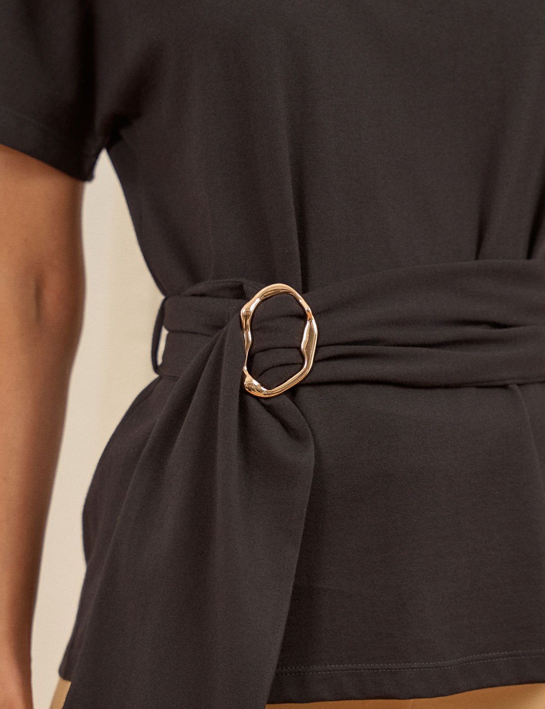 O destaque fica por conta dos passantes laterais com faixa decorativa finalizada por fivela orgânica, detalhe que adiciona personalidade à peça. Atemporal e moderna, é perfeita para compor produções casuais com um toque de sofisticação.