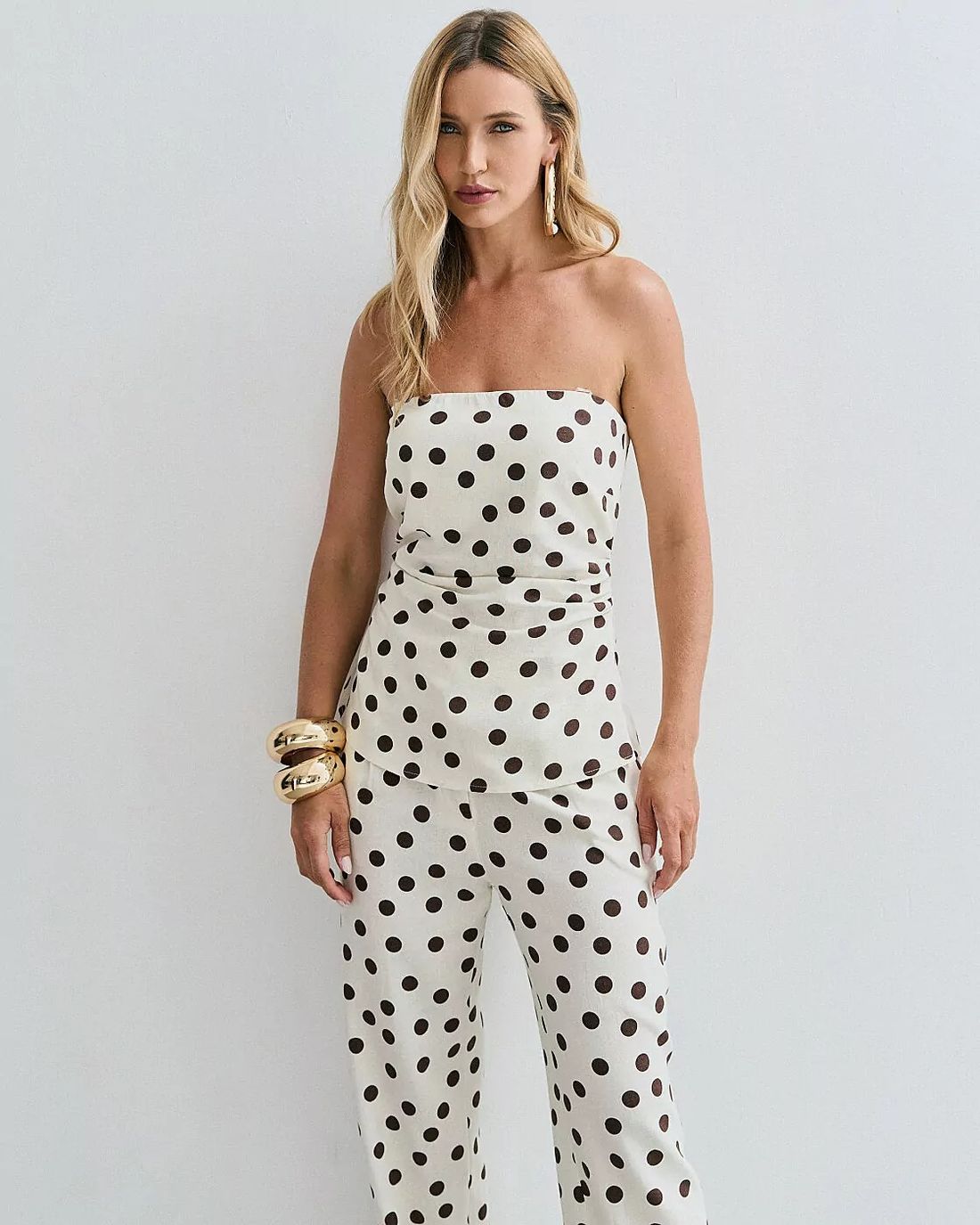 Sua modelagem ajustada ao corpo proporciona melhor sustentação e caimento, enquanto a estampa de poá adiciona charme, modernidade e um toque retrô chic à peça.