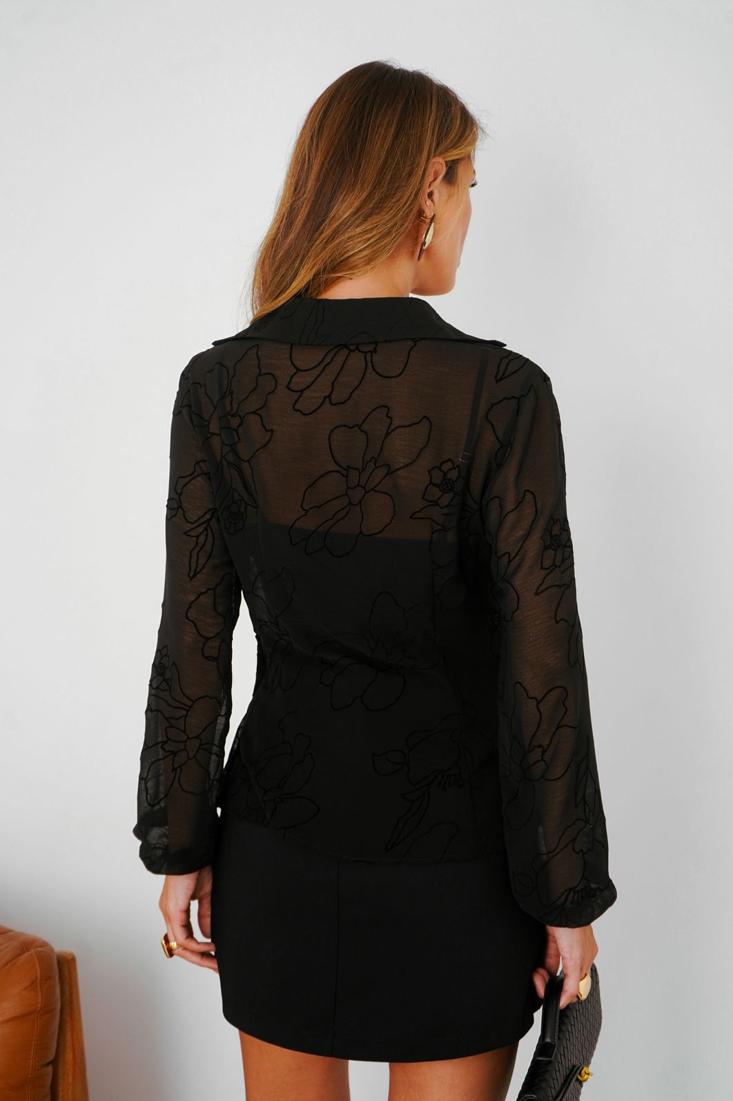 Blusa Transpassada Chiffon Flocado - Donna Ritz