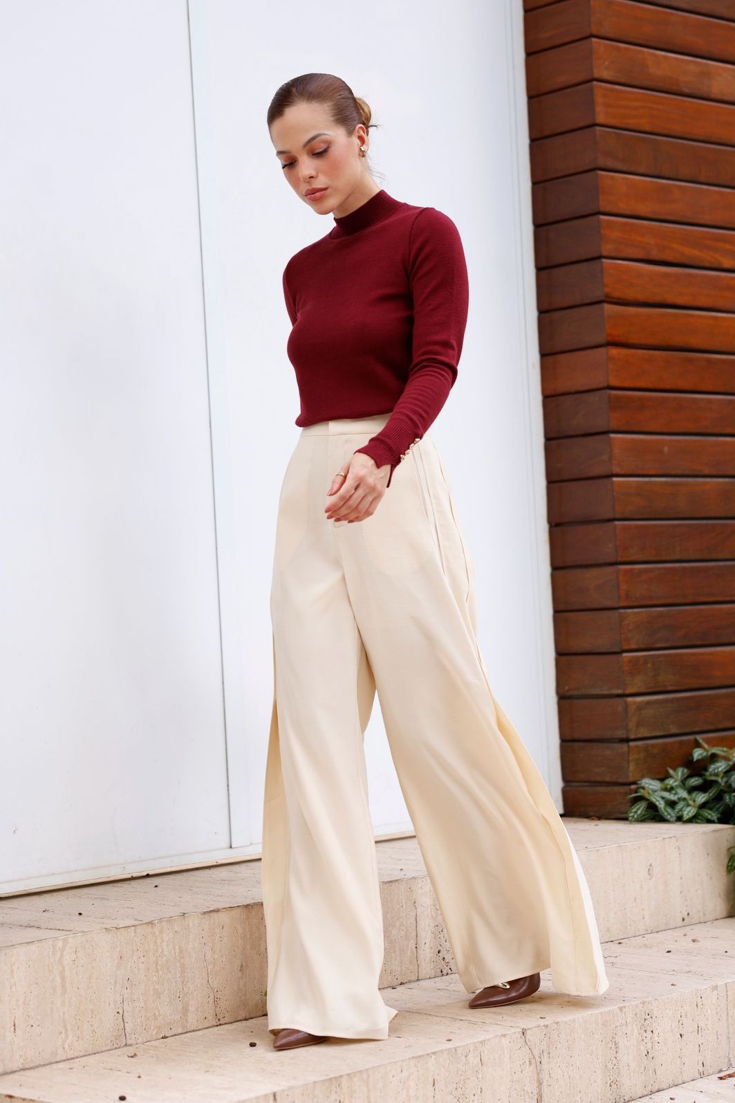 Os botões no punho trazem um detalhe delicado e sofisticado, elevando o visual de forma sutil. Sua modelagem versátil permite composições tanto para o dia a dia quanto para ocasiões mais elegantes.