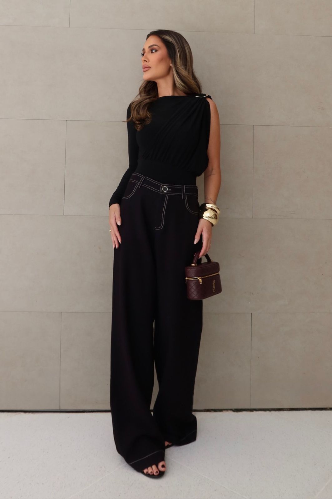 O destaque da peça fica por conta da fivela, que traz um toque moderno e sofisticado ao visual. O tecido em jersey proporciona elasticidade, maciez e excelente caimento, garantindo conforto durante todo o uso.