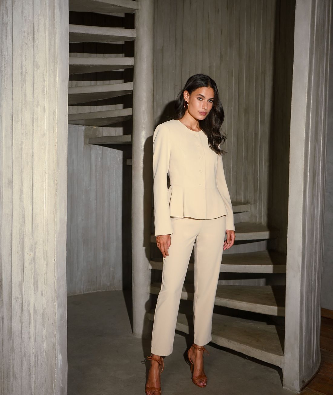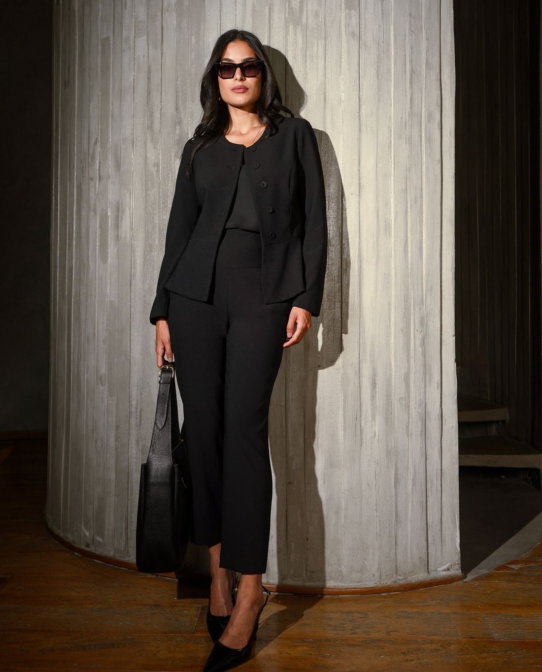 A pala estruturada garante ajuste perfeito ao corpo, enquanto o corte cenoura alonga a silhueta com elegância.