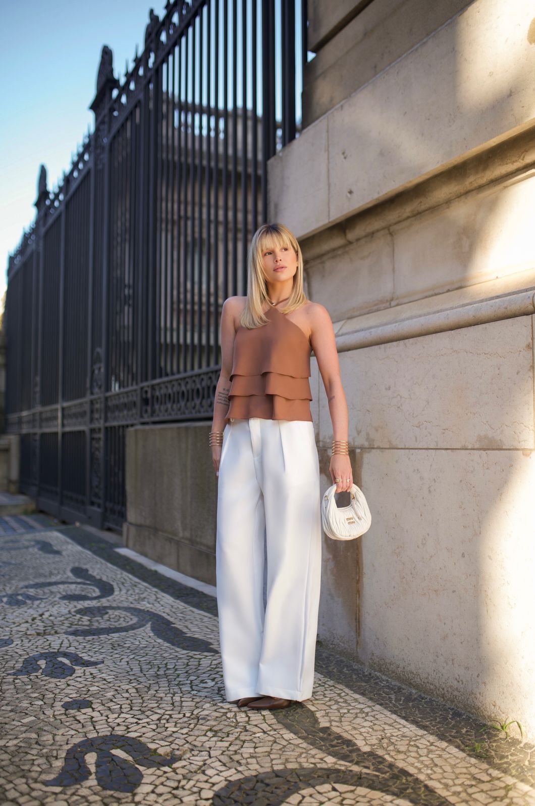 Confeccionada em tecido de alfaiataria leve e estruturado, garante conforto ao vestir e versatilidade para diversas ocasiões — do escritório ao happy hour.