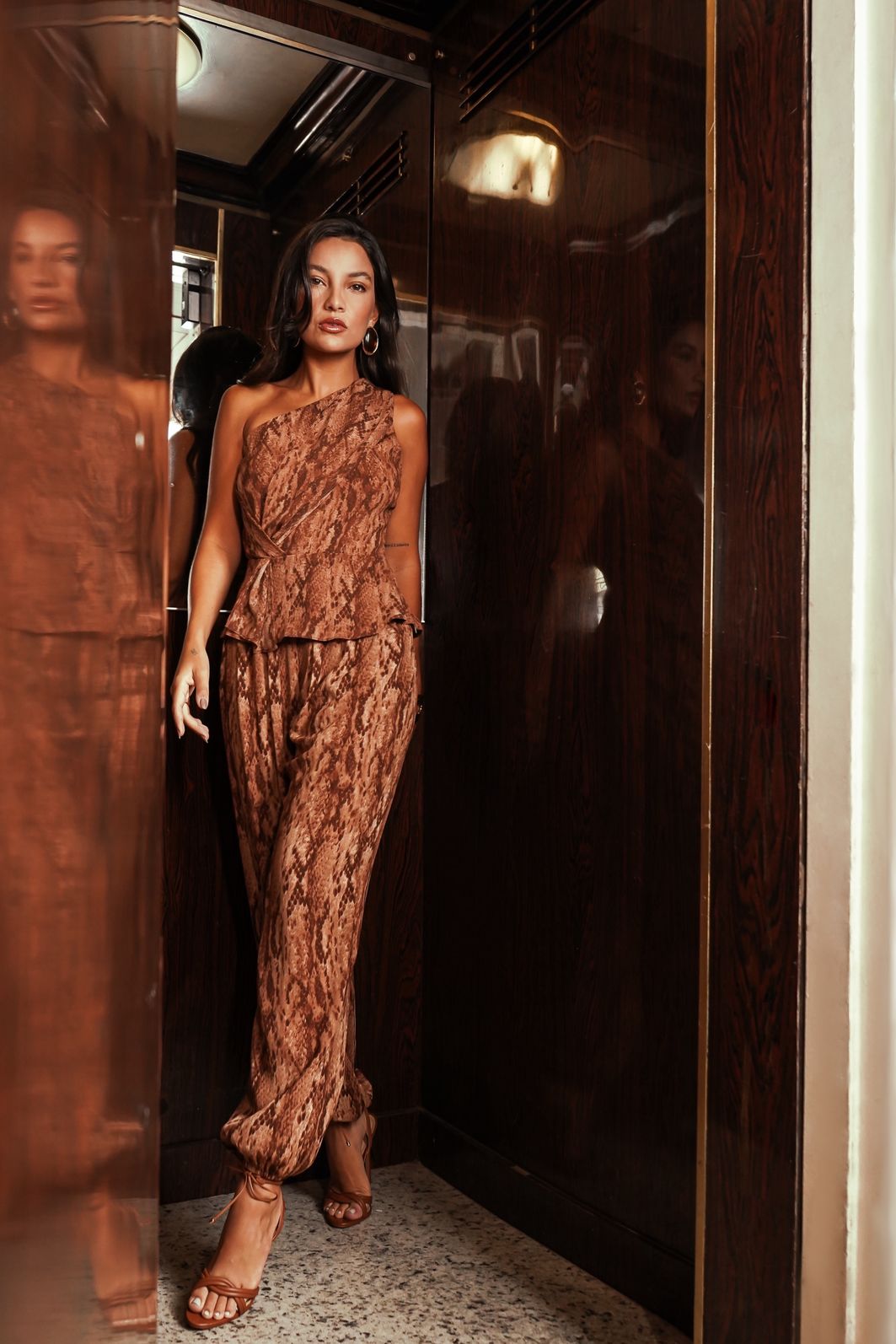 A estampa cobra em tons neutros e terrosos traz um visual atual e atemporal, enquanto o tecido leve proporciona caimento fluido e toque agradável.