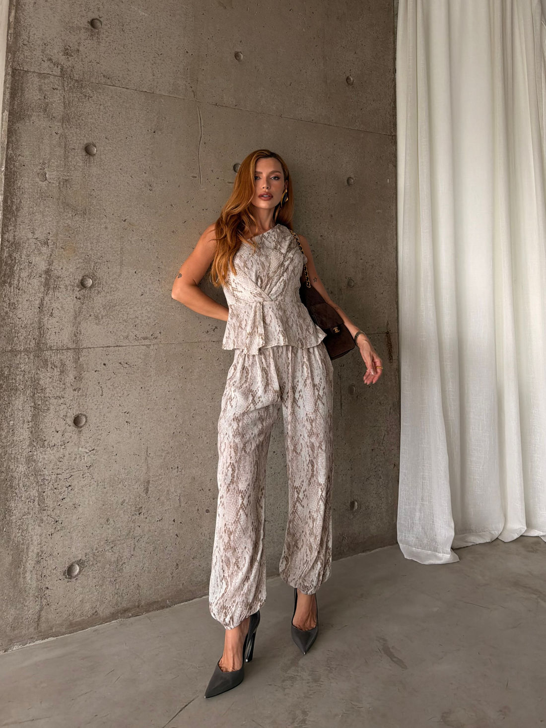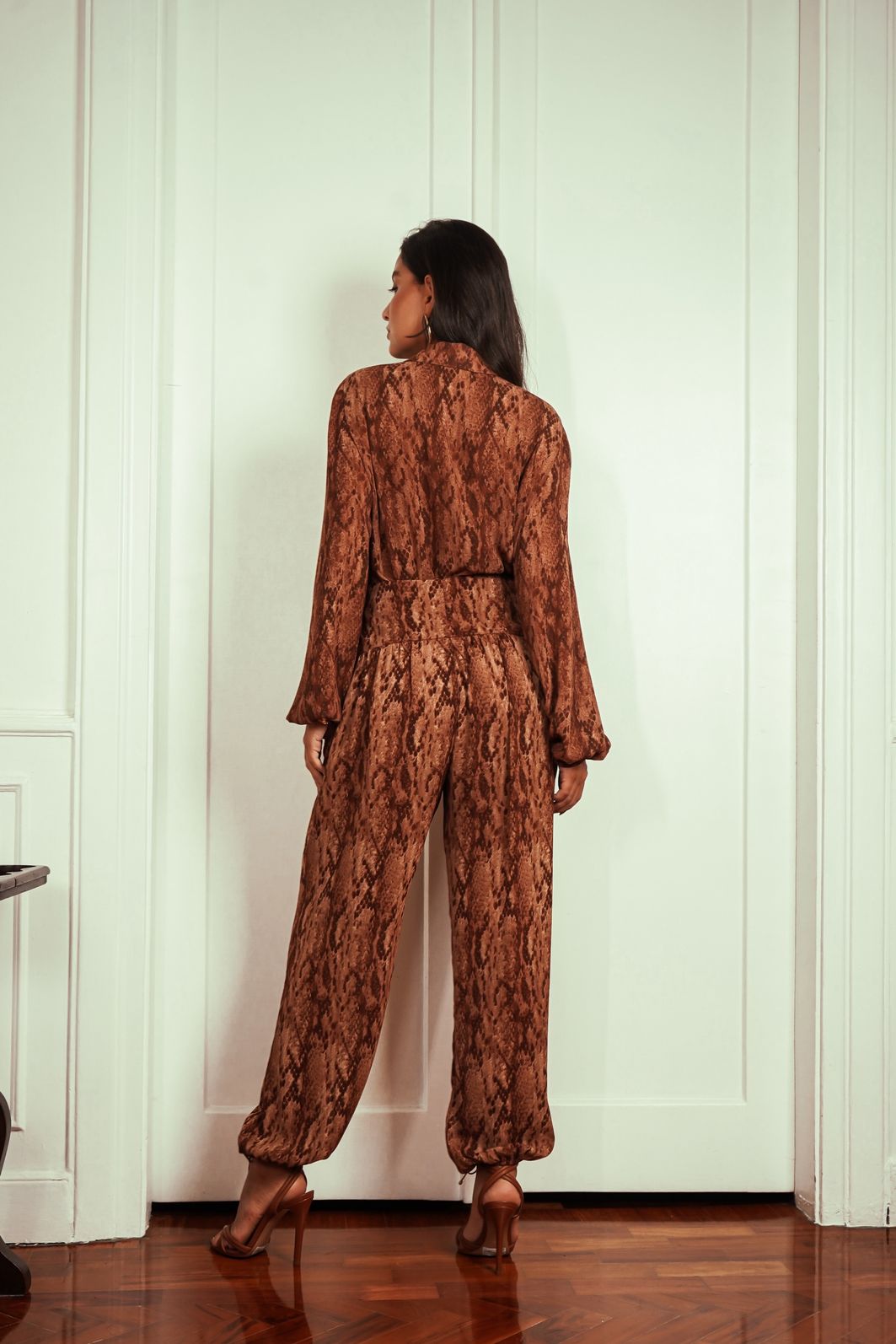 A calça feminina modelo harem em estampa cobra é a união perfeita entre conforto, sofisticação e informação de moda.