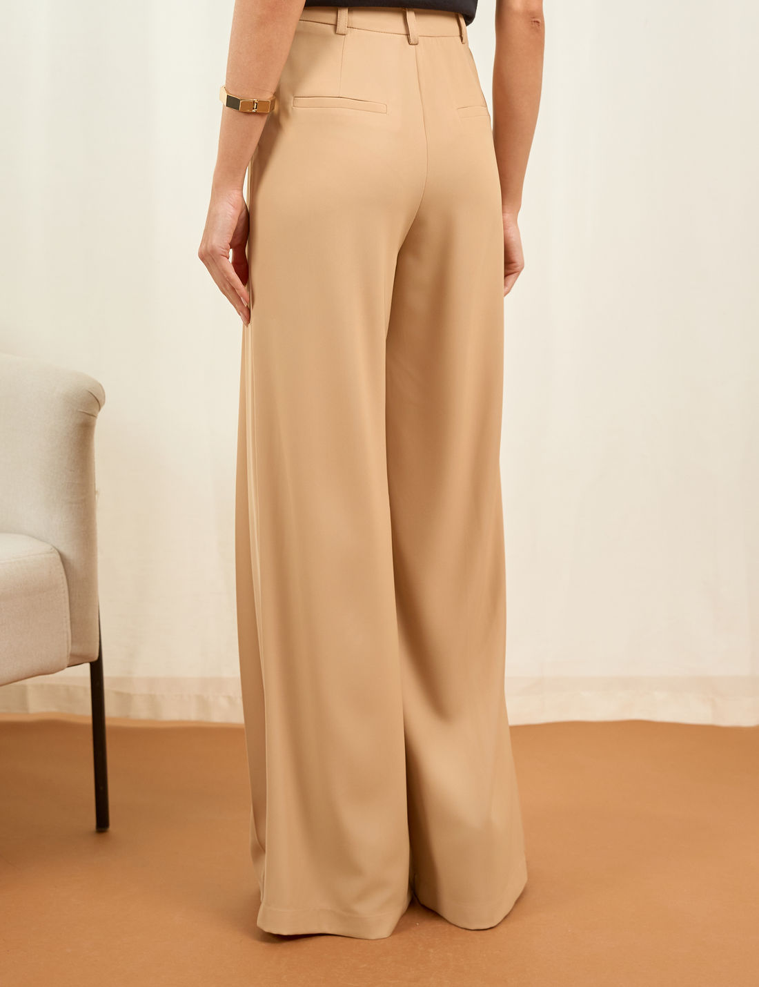 Calça confeccionada em tecido plano, com modelagem de alfaiataria. Possui cós com passantes fixos, ideal para o uso de cintos que permitem um ajuste personalizado e acrescentam um toque de estilo.