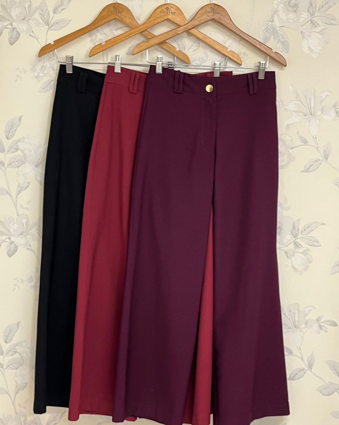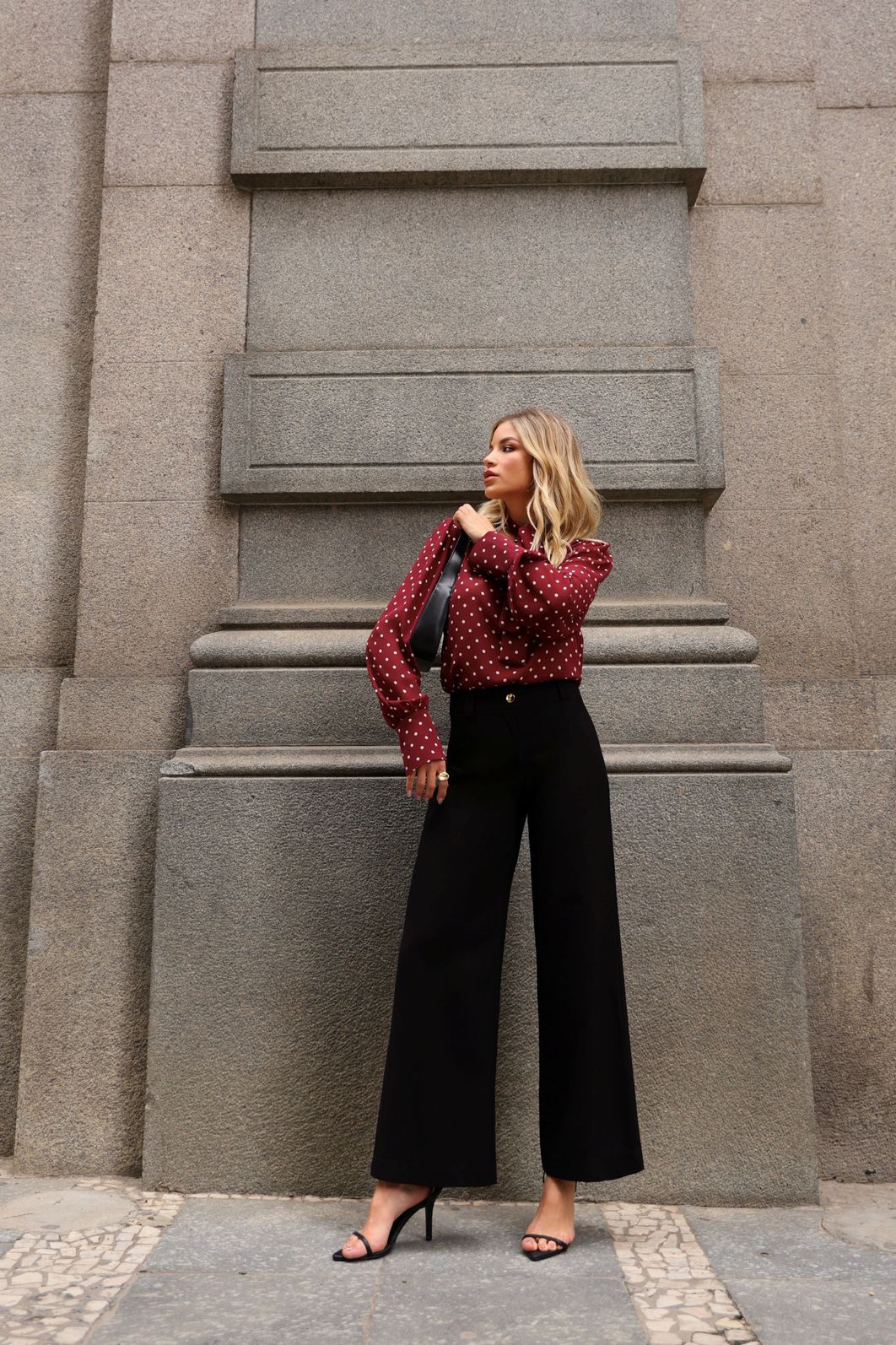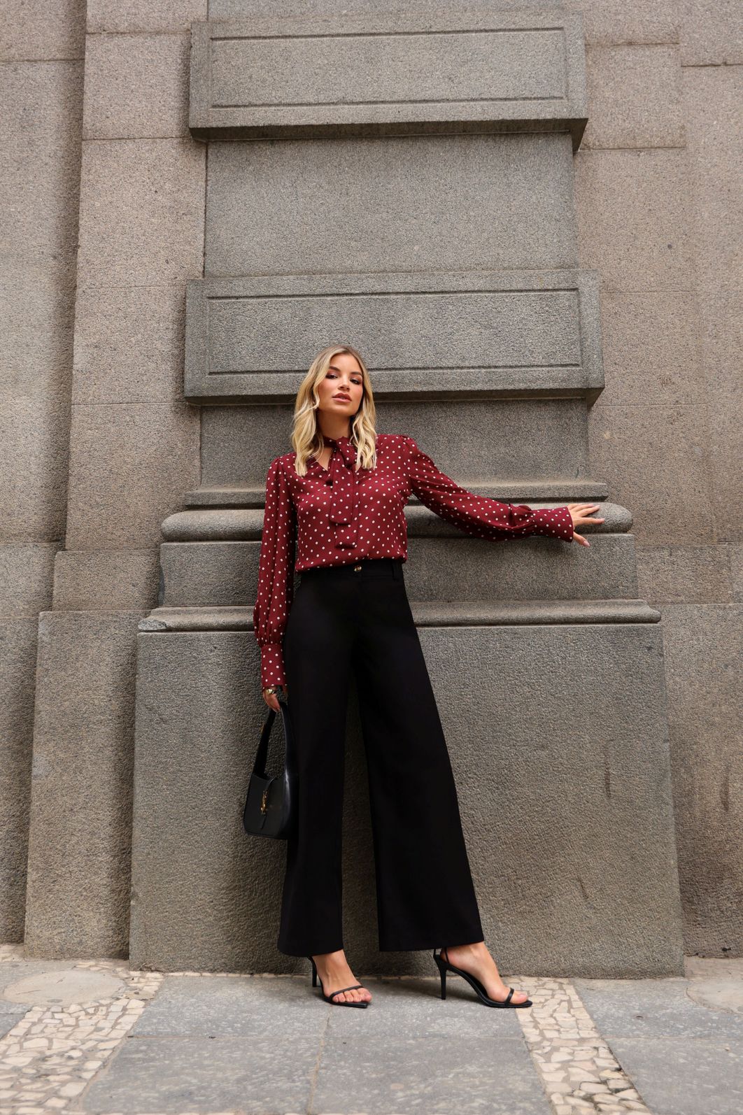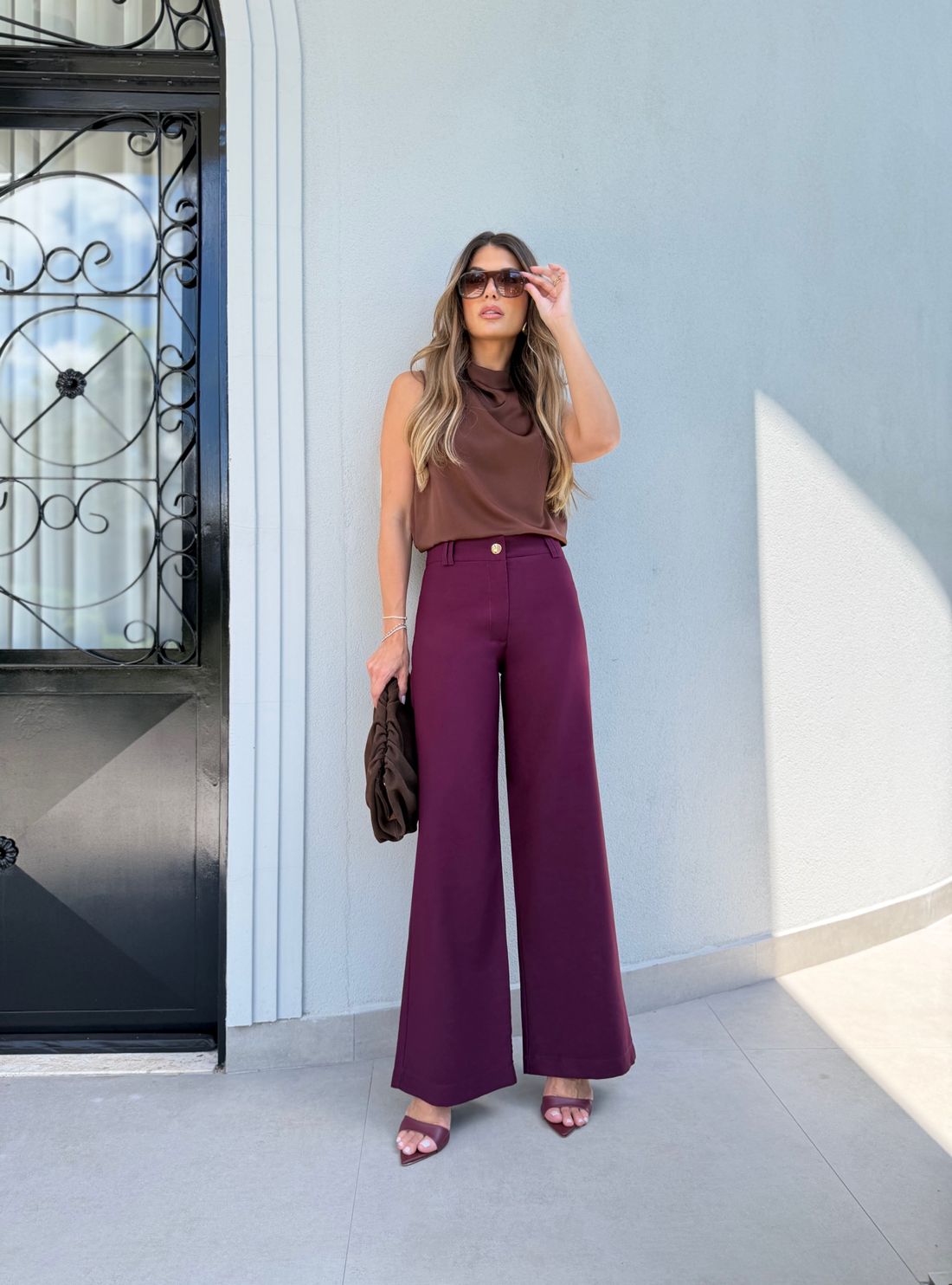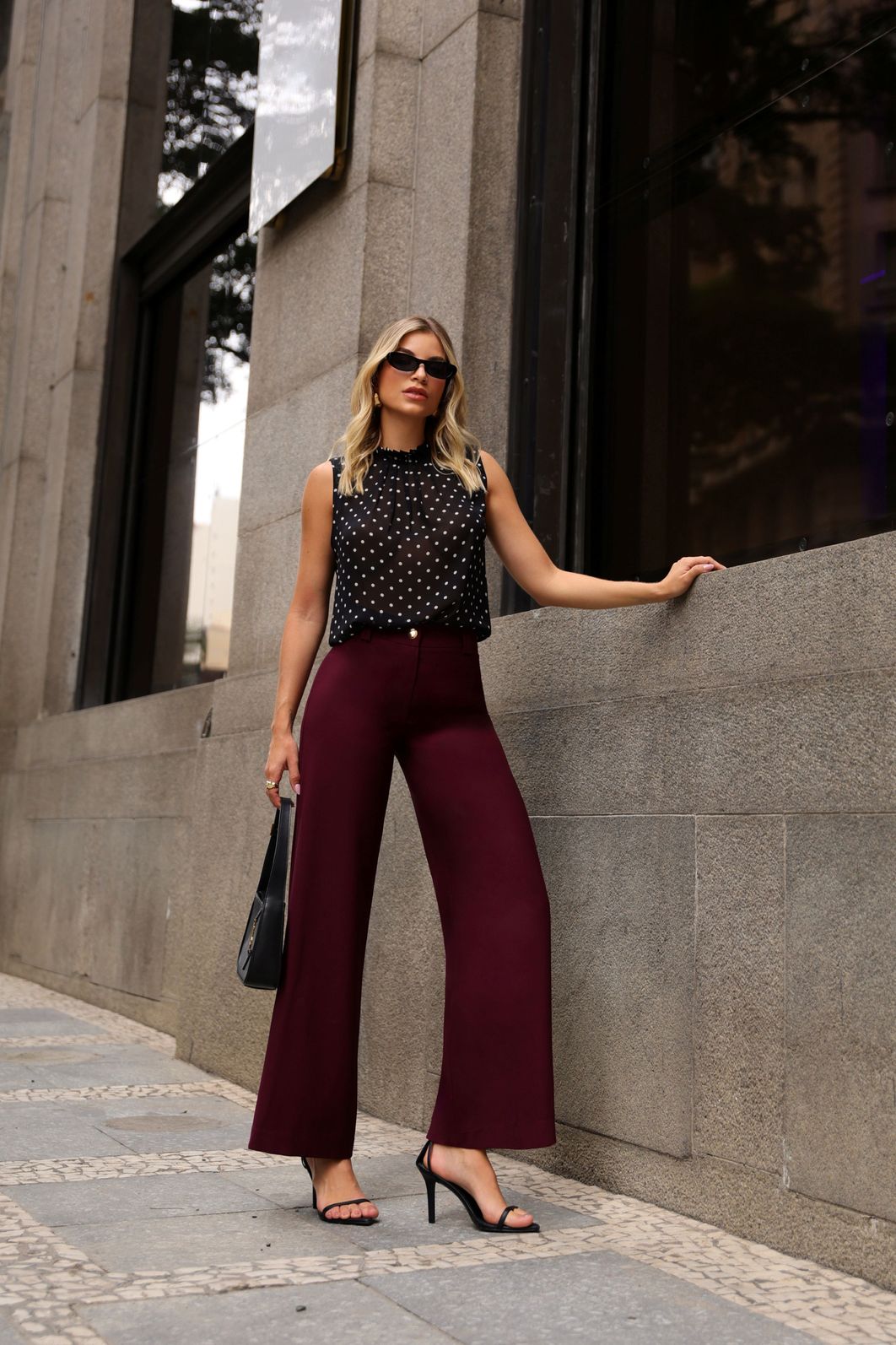 Com modelagem pantalona, apresenta pernas amplas que proporcionam movimento, conforto e um caimento impecável.