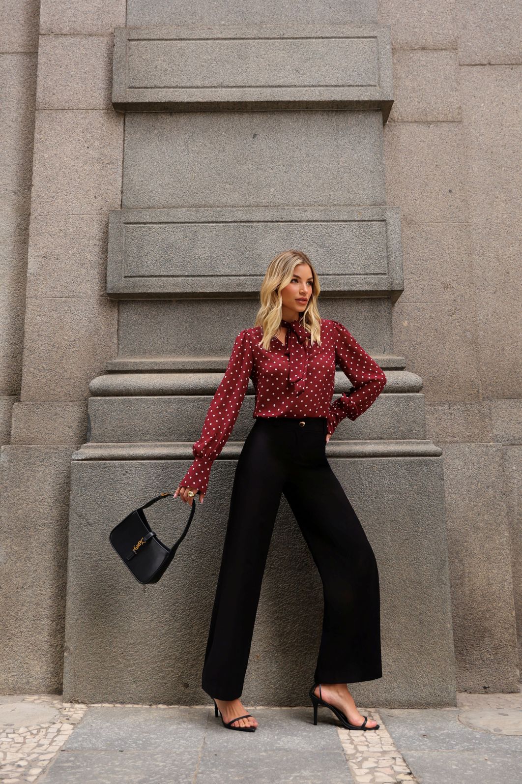 O destaque fica por conta dos passantes duplos no cós, que trazem um diferencial estiloso e permitem diferentes formas de composição com cintos. Versátil e atemporal, é ideal para produções elegantes no trabalho ou para ocasiões especiais.