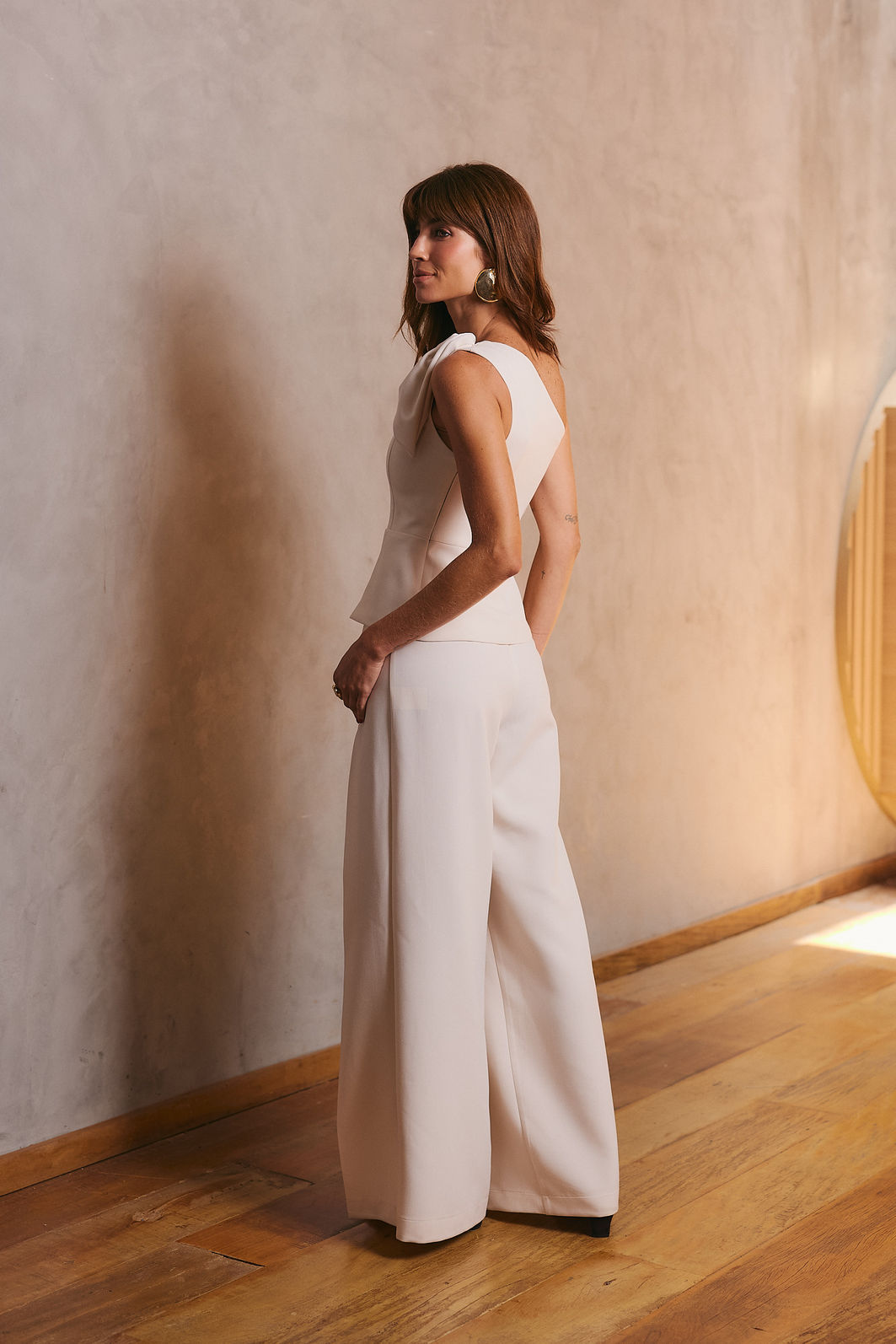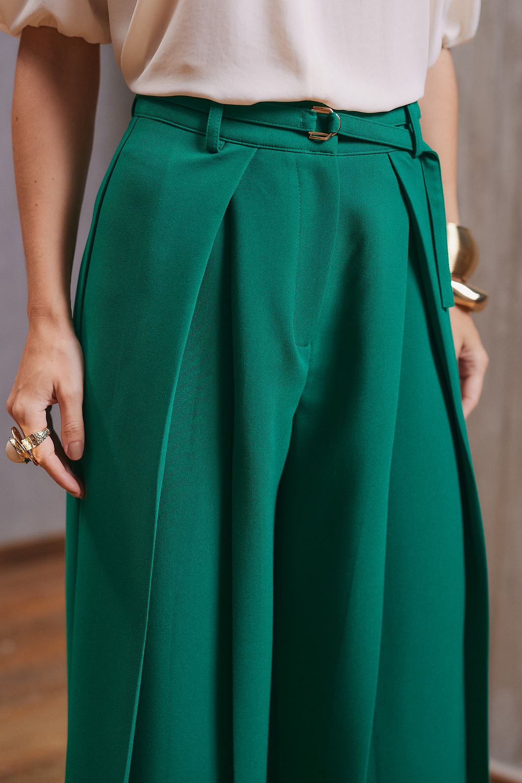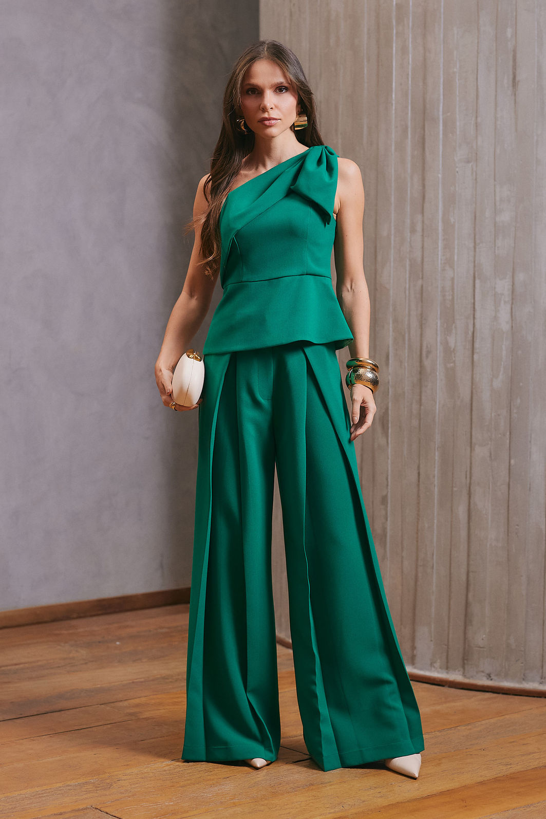 Calça confeccionada em tecido plano, com modelagem de alfaiataria que garante caimento encorpado e sofisticado.