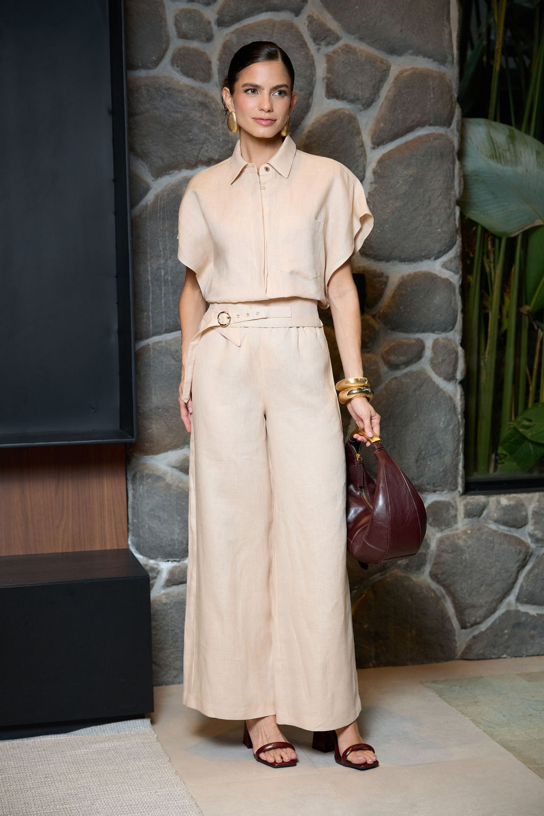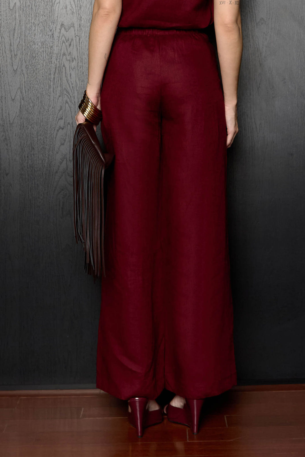 Calça confeccionada em linho 100%, tecido natural conhecido pelo toque macio, leve e fresco, que garante conforto aliado à elegância.
