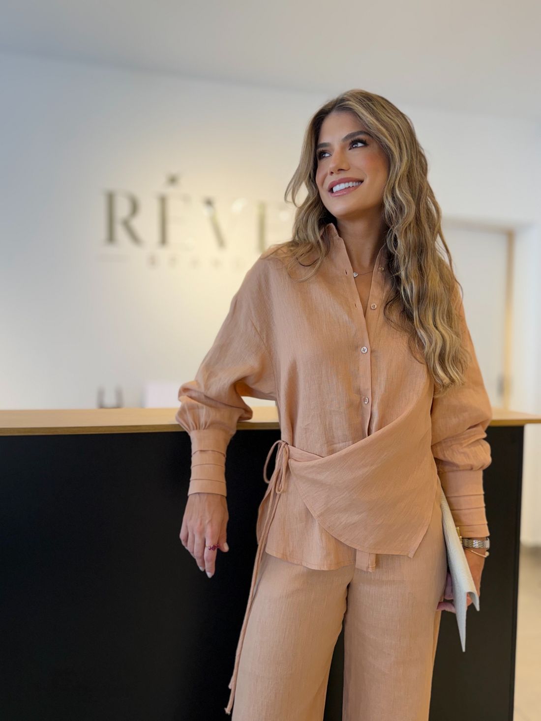 AdicionarA Camisa Bia é confeccionada em 100% linho, trazendo sofisticação e leveza em uma peça essencial para compor looks elegantes e modernos. Seu design apresenta modelagem solta, mangas longas com punhos ajustáveis, fechamento frontal por botões e um detalhe drapeado na cintura que valoriza a silhueta de forma sutil e refinada.