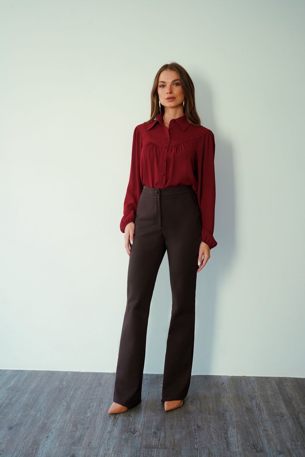 Camisa em crepe liso é uma peça versátil que traz sofisticação para qualquer produção. Confeccionada em tecido leve, proporciona conforto e excelente caimento.