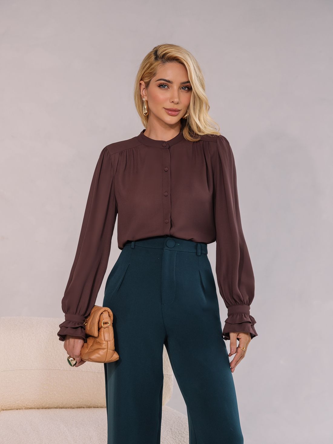 Camisa Crepe Punho Babados - Milalai