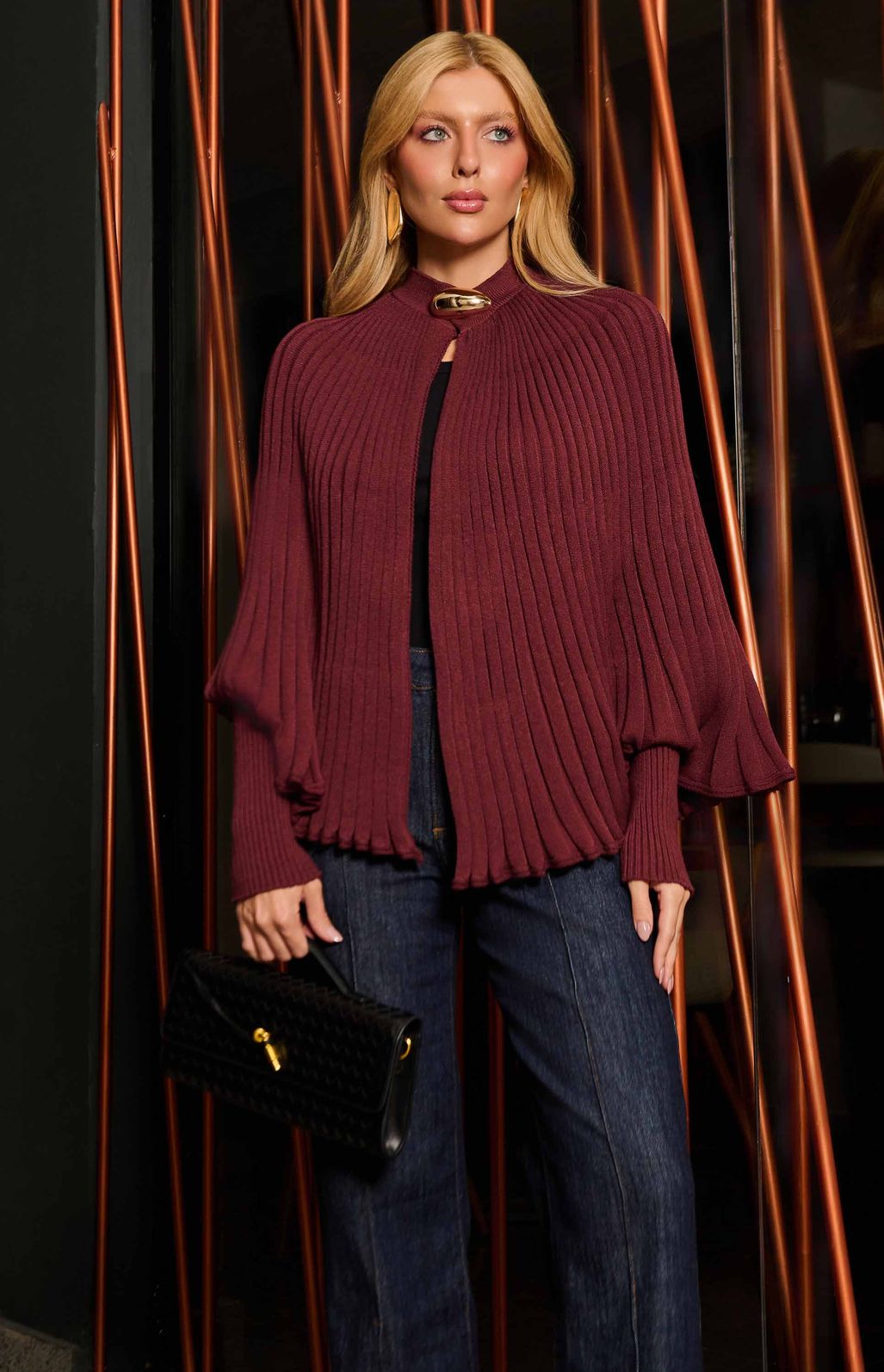 O cardigan feminino em tricot é a peça ideal para elevar produções com elegância e sofisticação.