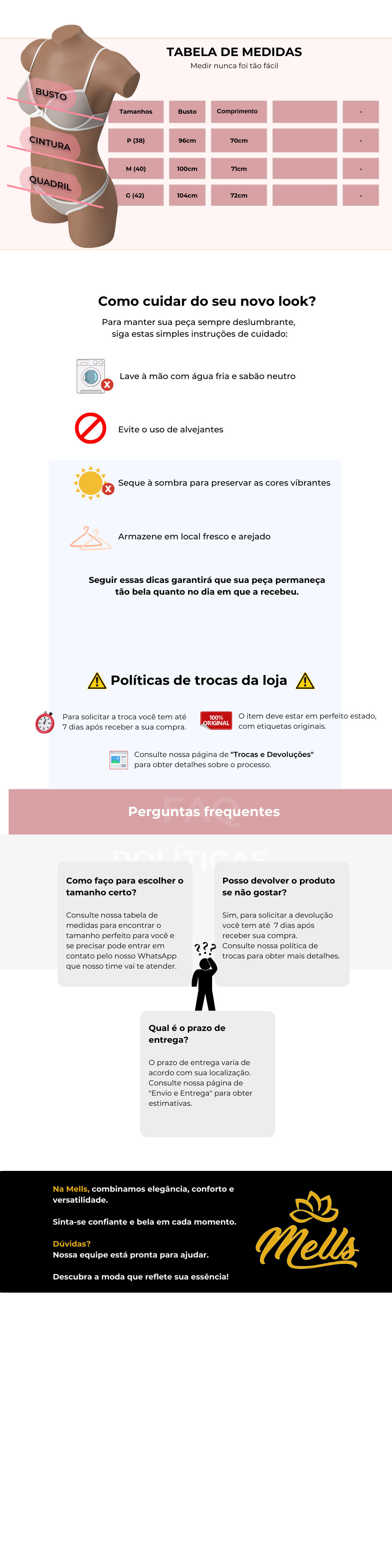 Mells Moda utiliza cookies e outras tecnologias para melhorar sua experiência de compra e personalizar anúncios, ao continuar navegando você concorda com nossa Política de Privacidade.
