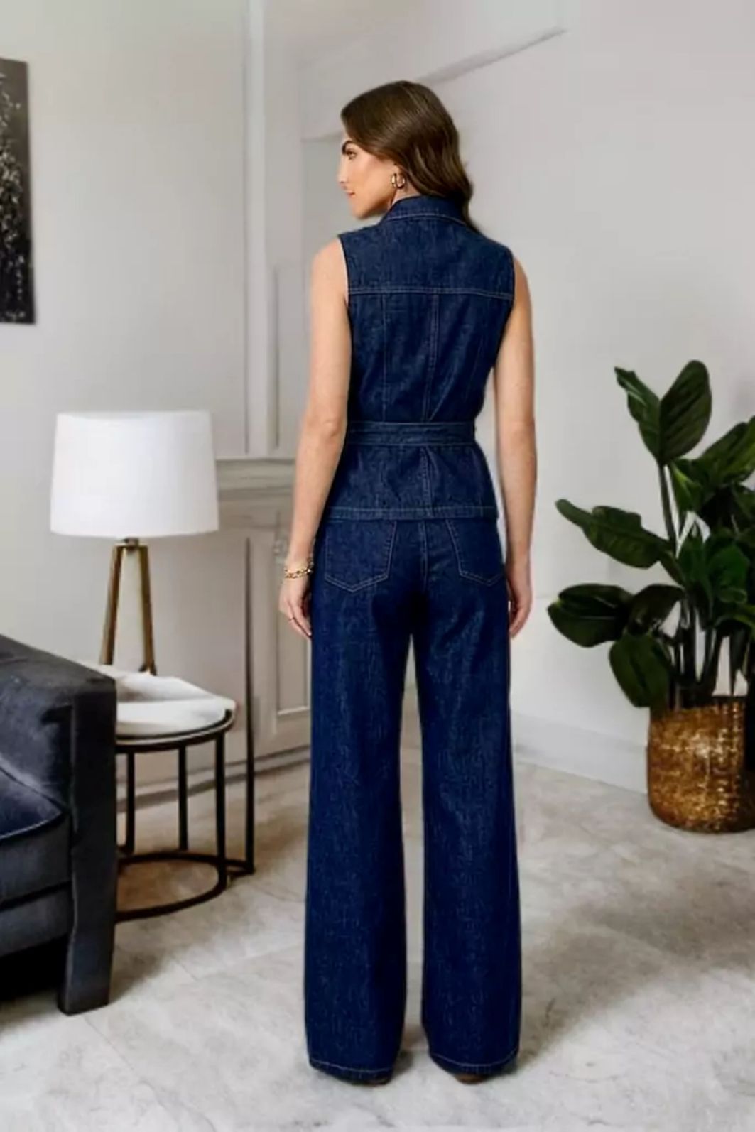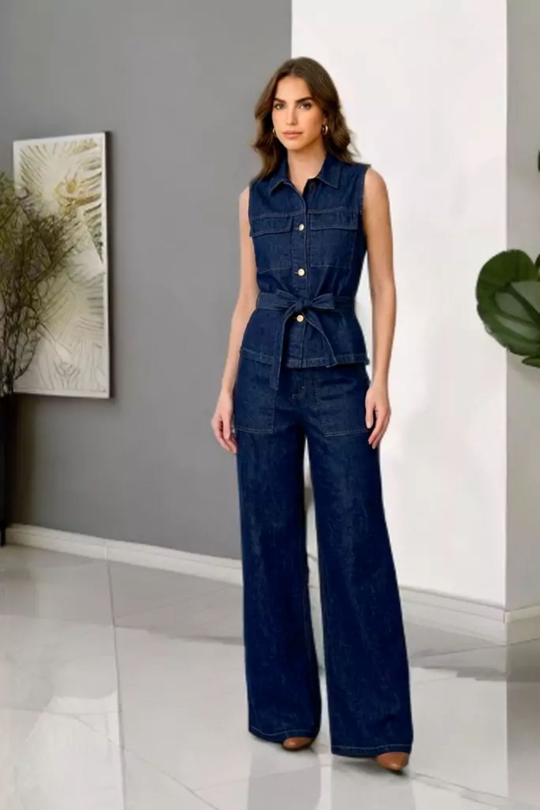 Colete Jeans com Faixa é a peça perfeita para um visual moderno, estiloso e cheio de personalidade. Com modelagem estruturada e sem mangas, ele valoriza a silhueta e traz um toque fashion para qualquer produção.