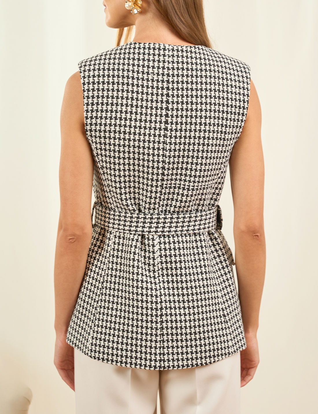 AdicionarColete confeccionado em tweed, com caimento estruturado que transmite elegância e modernidade ao visual.