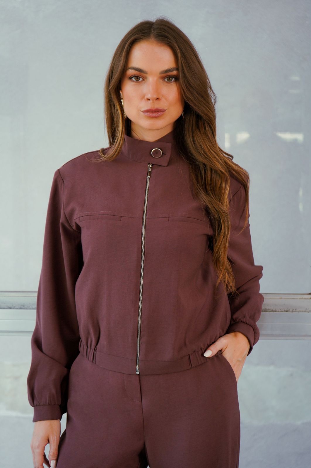 Jaqueta bomber em alfaiataria texturizada é a união perfeita entre estilo moderno e sofisticação. Com acabamento refinado, ela traz uma releitura elegante do clássico modelo bomber, ideal para compor looks versáteis e cheios de personalidade.