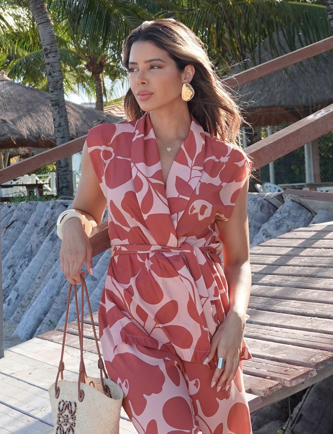 Com estampa exclusiva em tons harmoniosos e design contemporâneo, o kimono apresenta modelagem soltinha, sem mangas e acompanha faixa para amarração, permitindo ajustar a cintura e valorizar a silhueta.