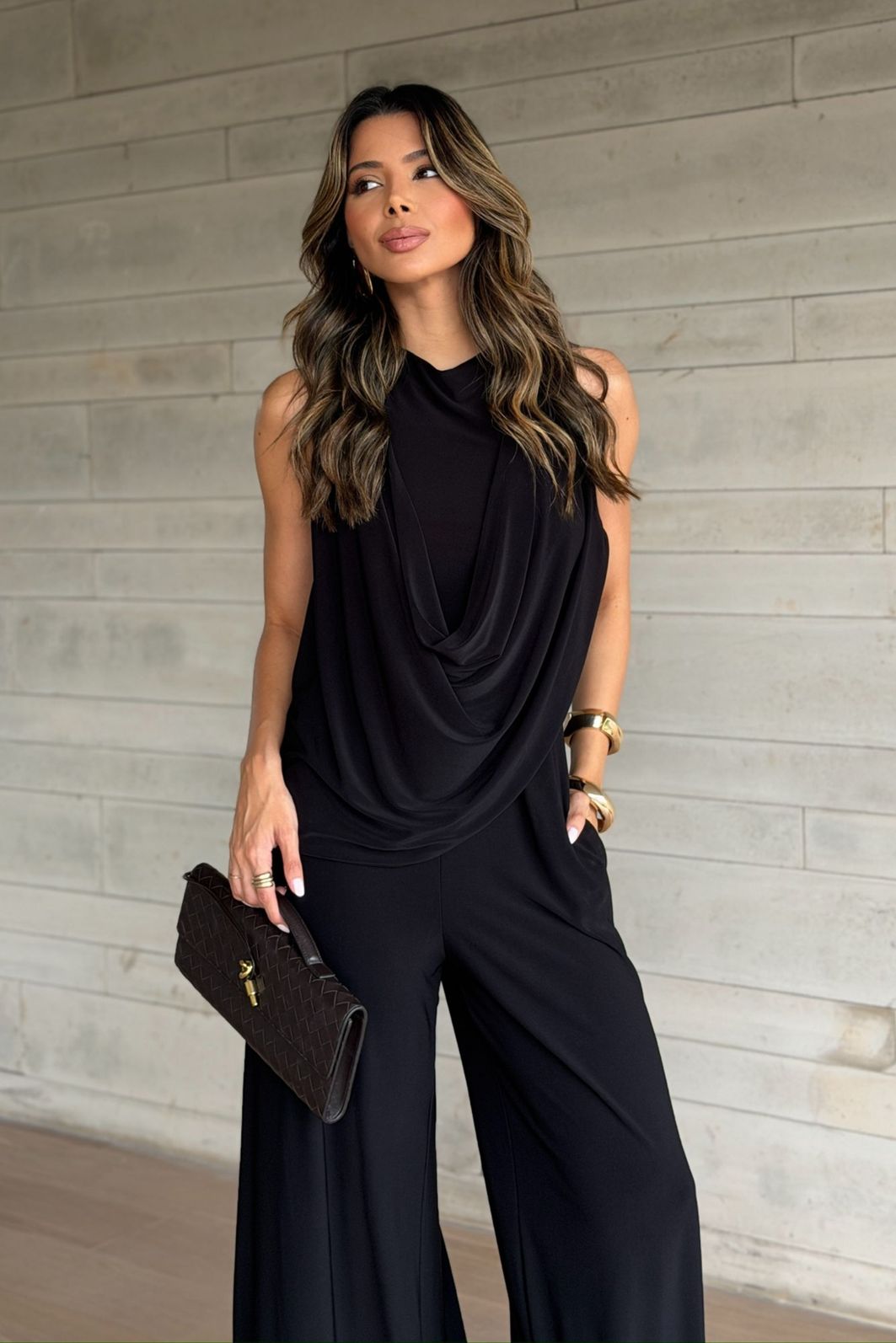 O Macacão Pantalona Jersey Degagê permite criar looks elegantes com facilidade: