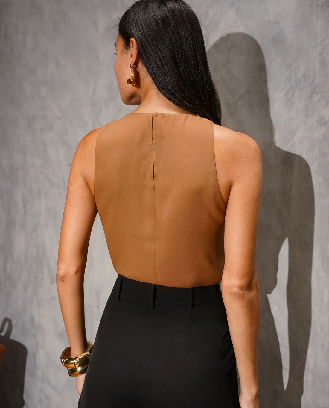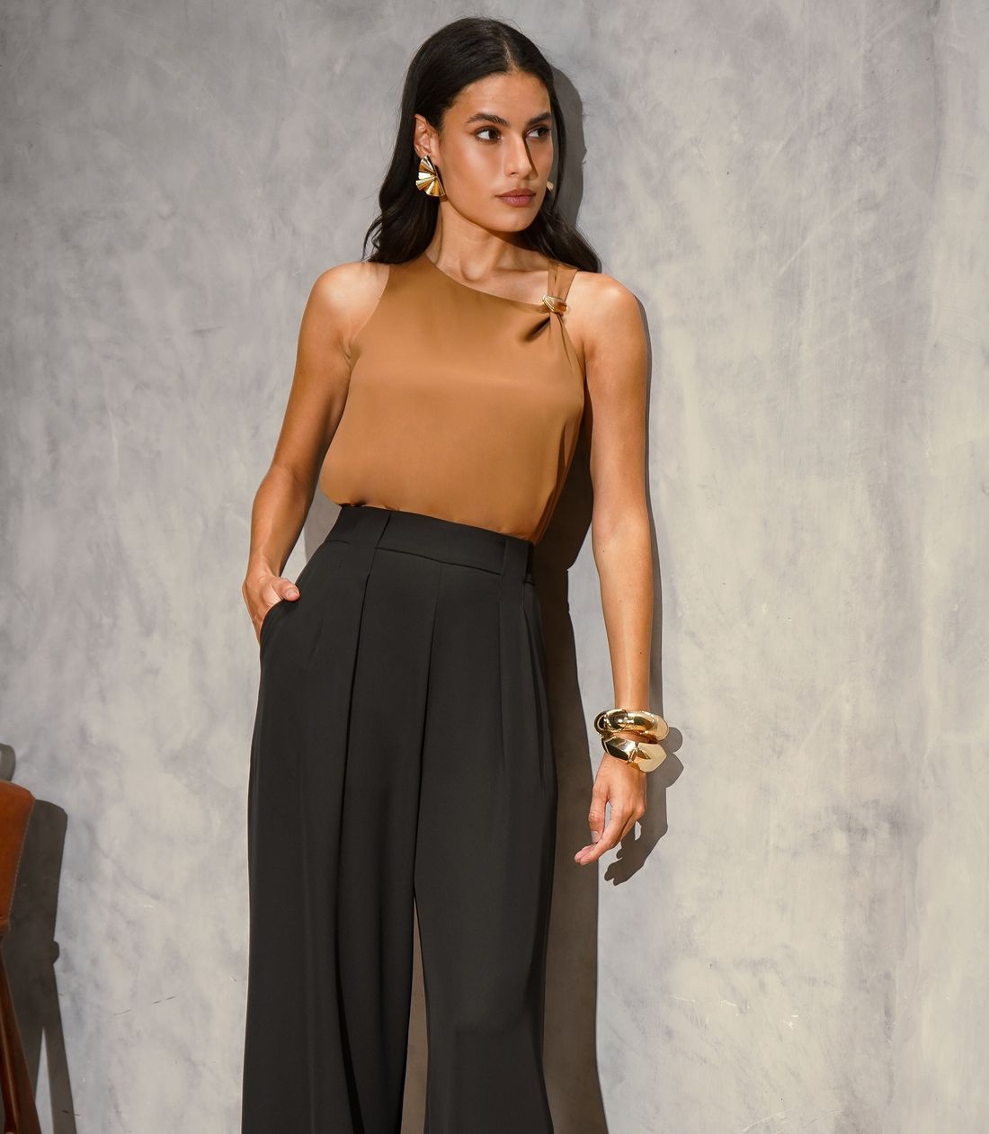 A regata em crepe liso é uma peça elegante e feminina, pensada para elevar produções do dia a dia com um toque de sofisticação.