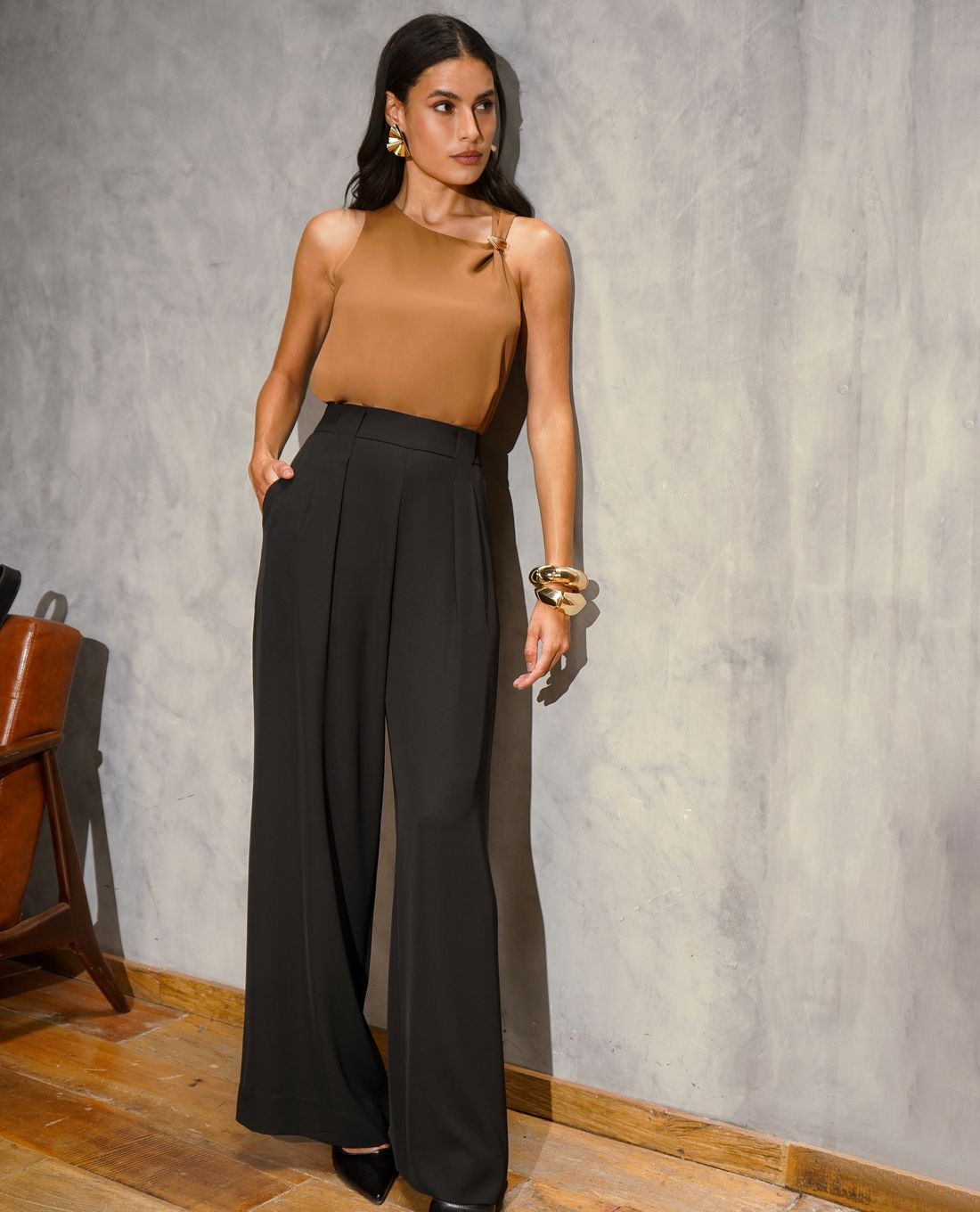 Versátil, pode ser usada tanto em looks formais quanto em produções mais modernas, combinando perfeitamente com alfaiataria, saias ou jeans.