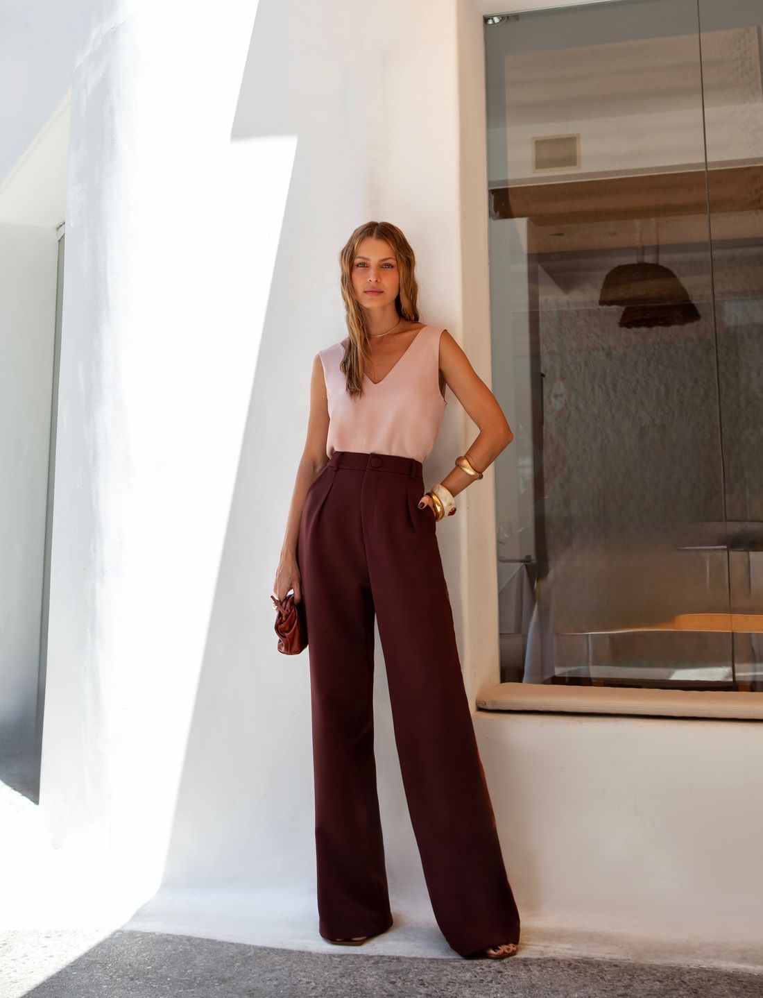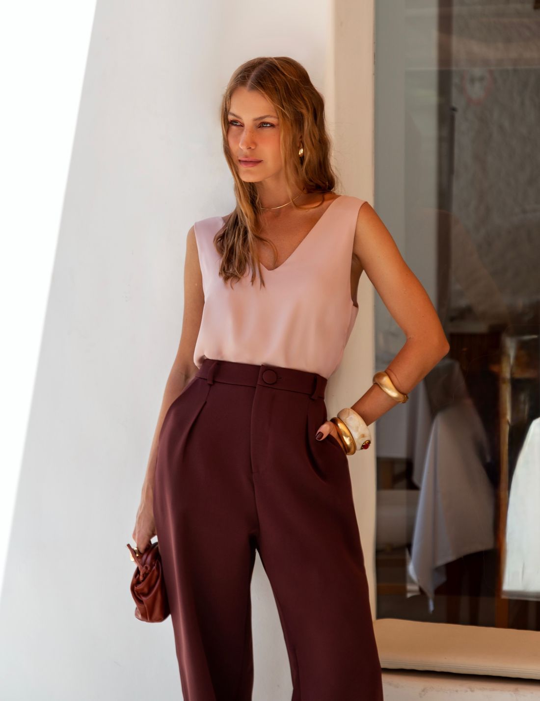 Confeccionada em crepe leve e fluido, a regata possui excelente caimento e toque macio, garantindo conforto ao longo do uso. O decote V valoriza o colo de forma delicada e alonga a silhueta, trazendo feminilidade na medida certa.