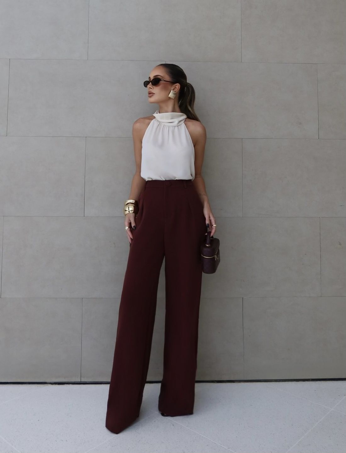 Blusa feminina confeccionada em tecido crepe, com caimento leve, elegante e sofisticado. A modelagem halter com gola alta valoriza o colo e os ombros, criando um visual moderno e refinado, ideal para composições versáteis que transitam do trabalho a ocasiões especiais.