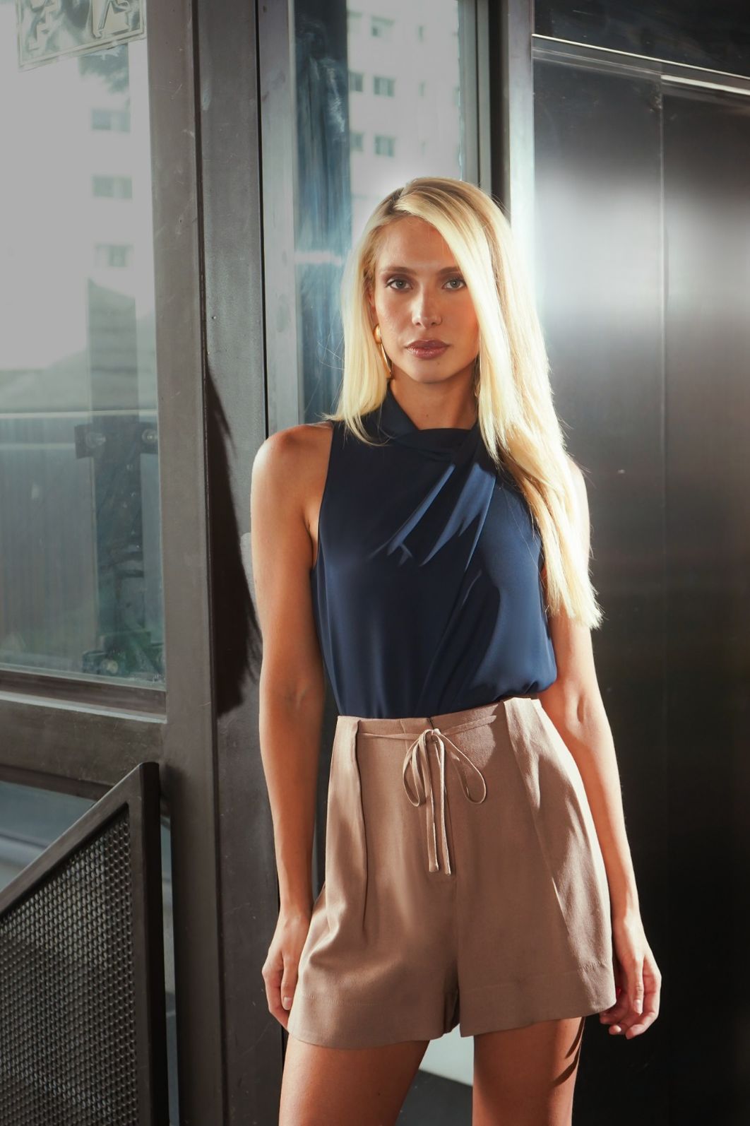 O fechamento nas costas com aselha e botão interno garante ajuste confortável e acabamento refinado, mantendo o visual clean e sofisticado. Leve e agradável ao toque, é ideal para composições elegantes da estação, combinando perfeitamente com alfaiataria, saias midi ou peças em tons terrosos.