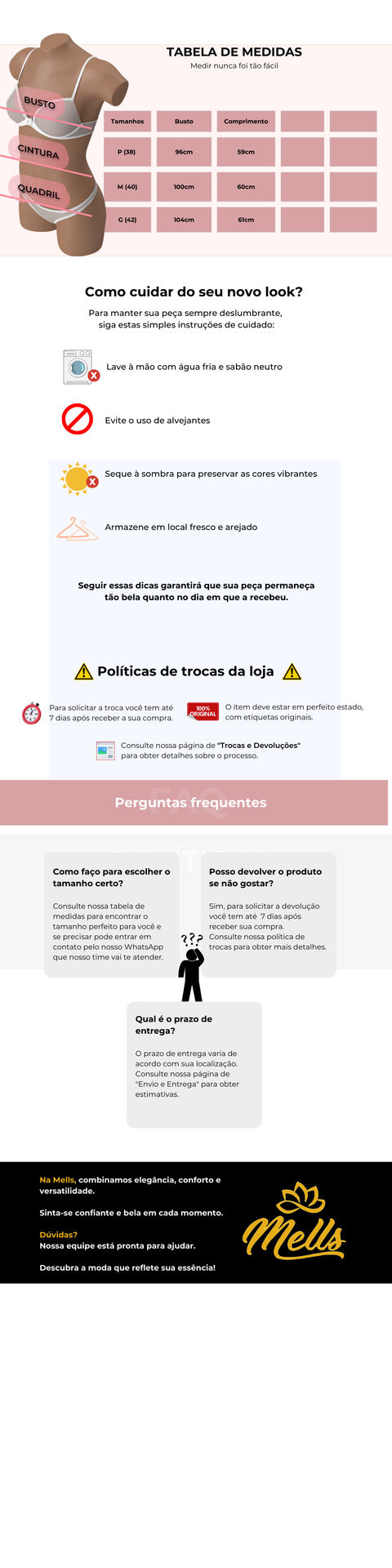 Mells Moda utiliza cookies e outras tecnologias para melhorar sua experiência de compra e personalizar anúncios, ao continuar navegando você concorda com nossa Política de Privacidade.