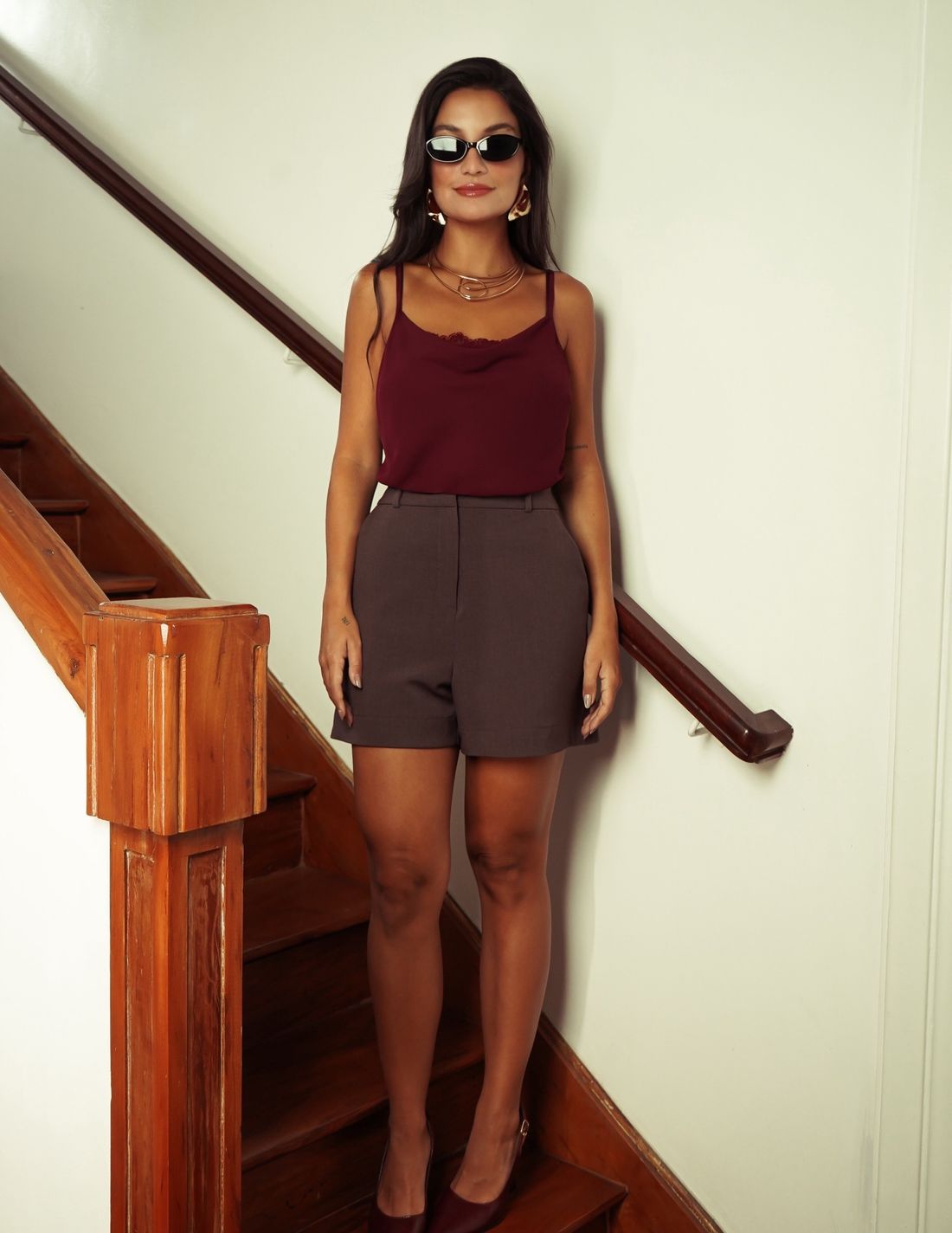 Combine com peças de alfaiataria para um visual sofisticado e equilibrado. Para uma proposta moderna, use com shorts ou calça de cintura alta e finalize com salto ou sandália minimalista. Também pode ser usada sob blazers para composições elegantes e atuais.