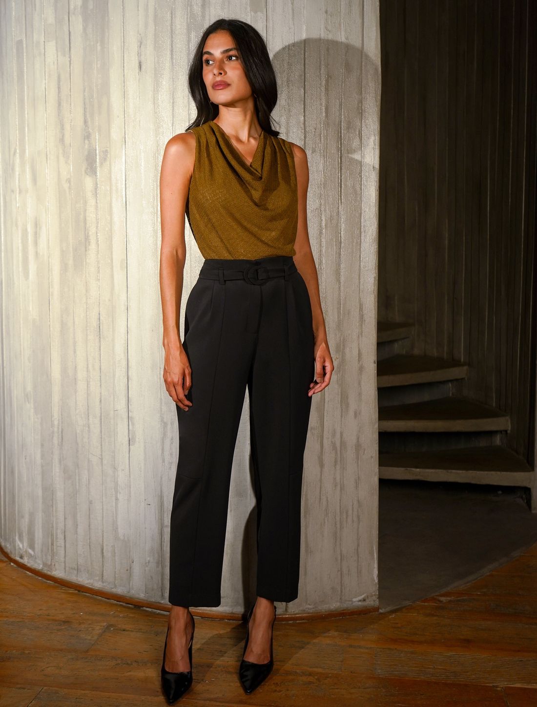 Perfeita para looks profissionais sofisticados ou produções minimalistas com acessórios marcantes.