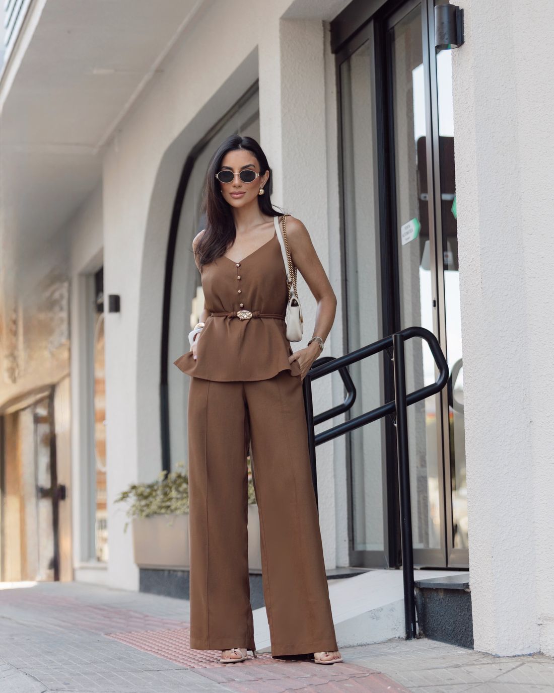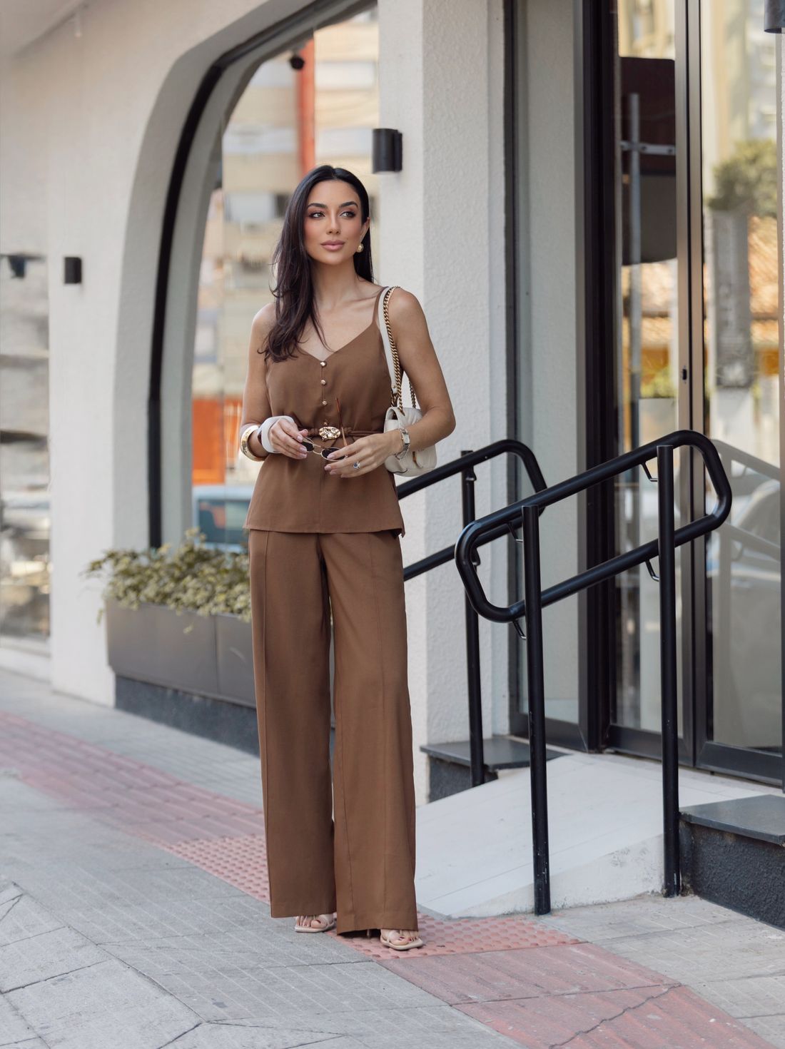 Funciona perfeitamente em conjuntos coordenados, com sandálias de salto para uma produção refinada ou com flats para um look moderno e confortável.