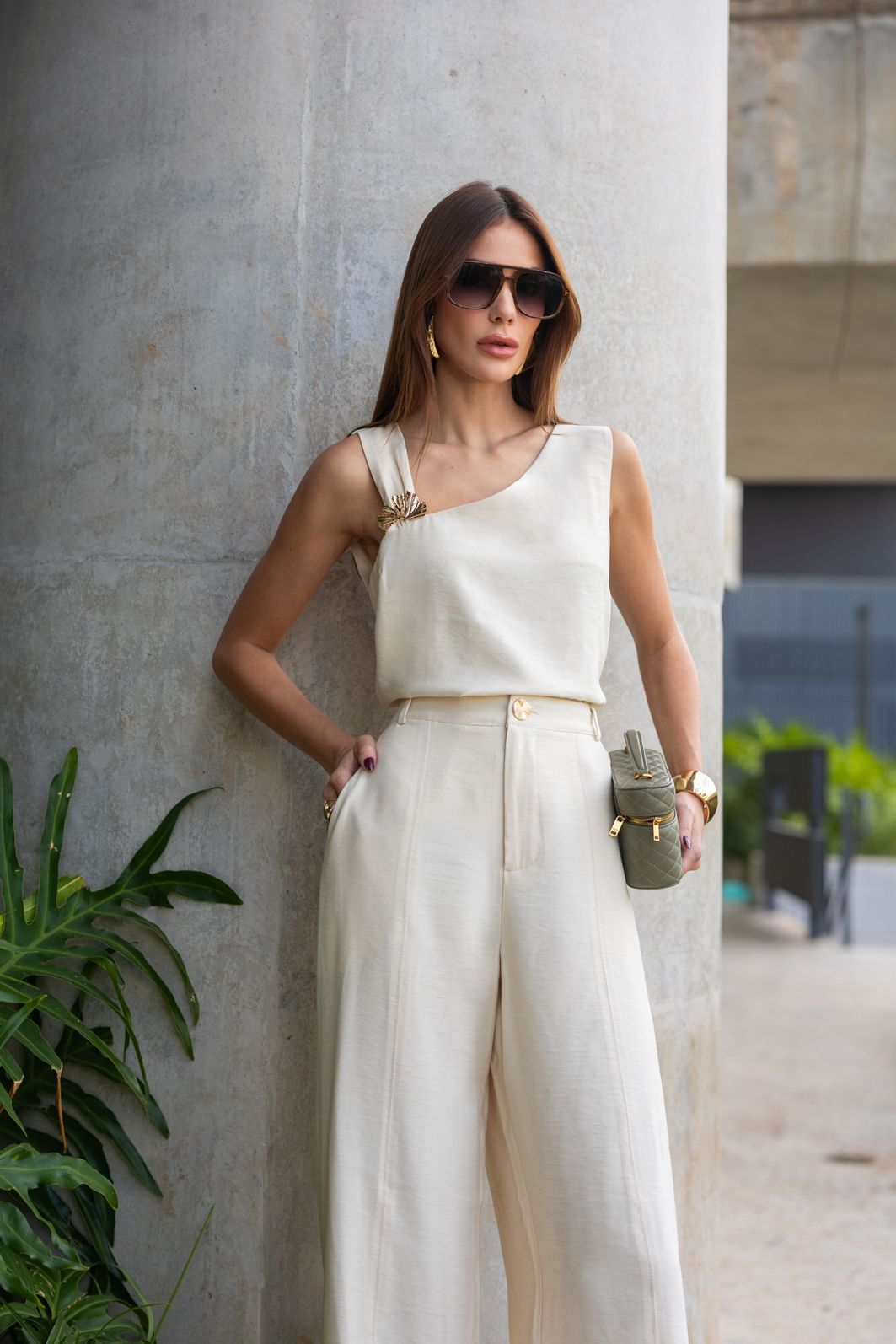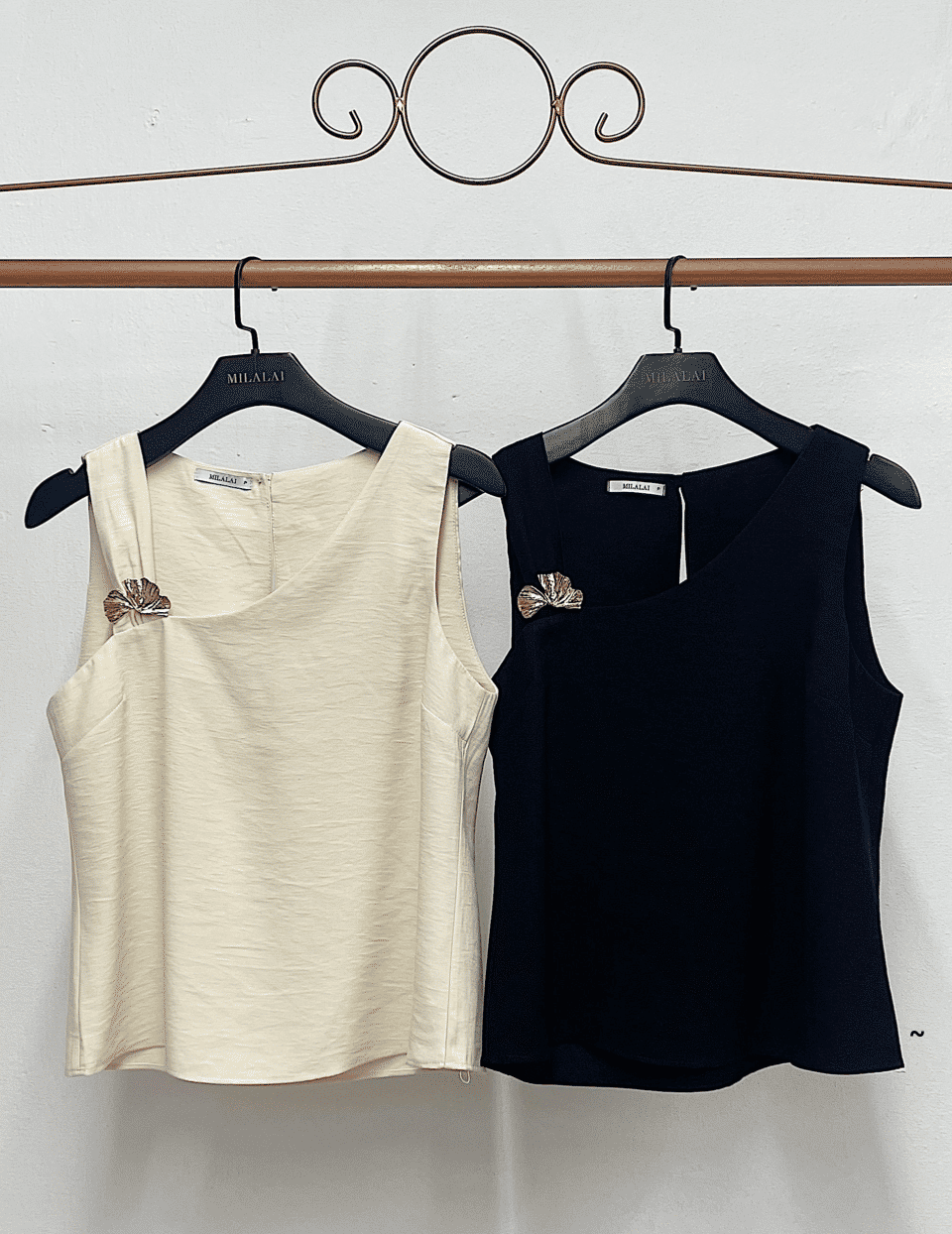 Regata Marrant Decote Assimétrico Fívela Dourada - Milalai