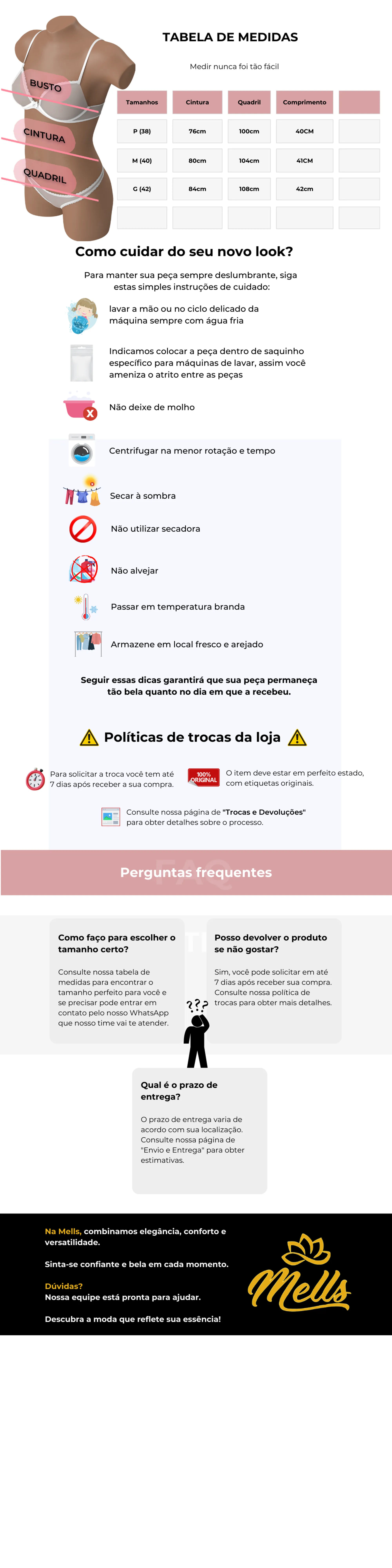 Mells Moda utiliza cookies e outras tecnologias para melhorar sua experiência de compra e personalizar anúncios, ao continuar navegando você concorda com nossa Política de Privacidade.