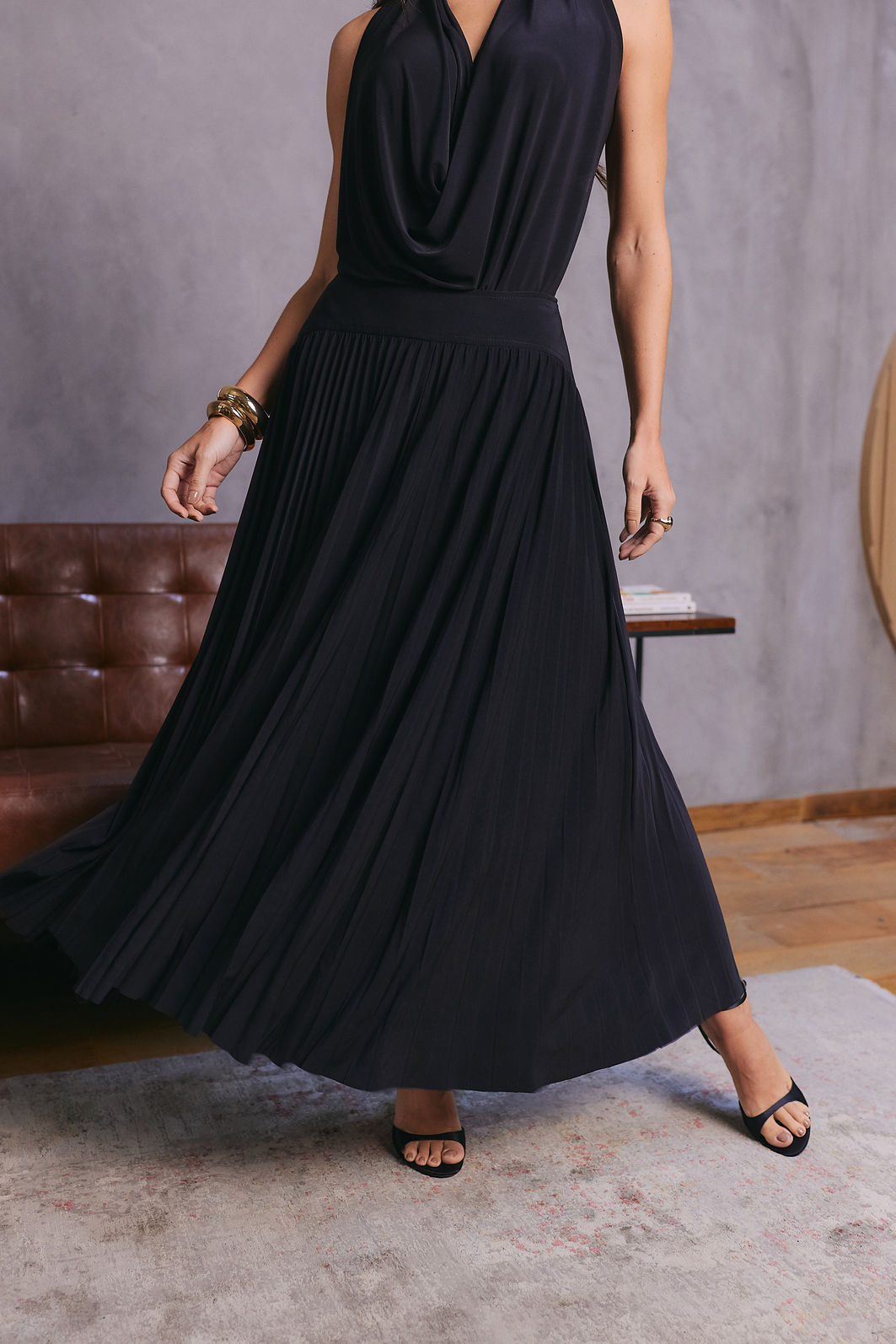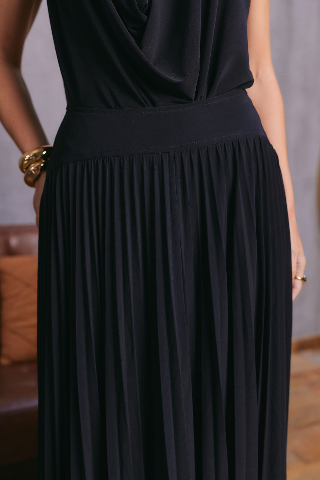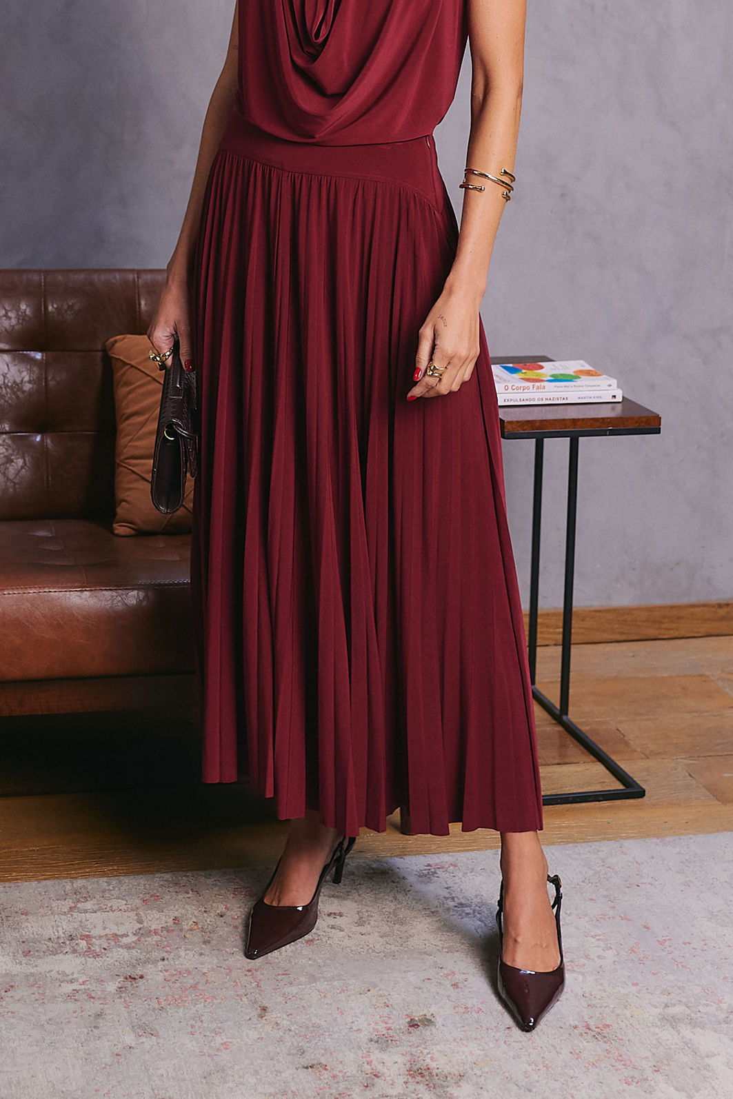 De comprimento midi, é uma peça atemporal e casual, perfeita para compor looks versáteis e modernos para diversas ocasiões.