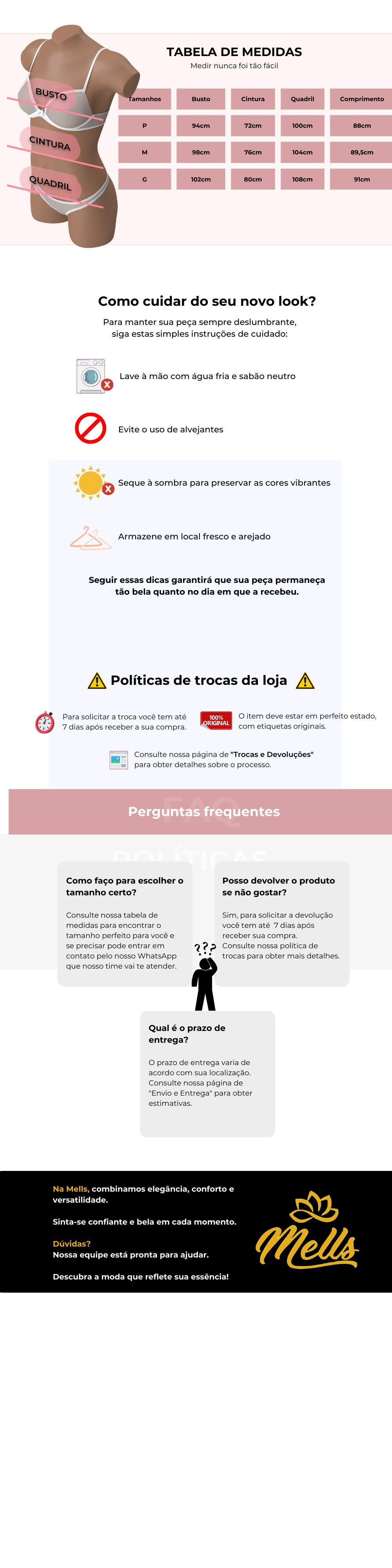 Mells Moda utiliza cookies e outras tecnologias para melhorar sua experiência de compra e personalizar anúncios, ao continuar navegando você concorda com nossa Política de Privacidade.