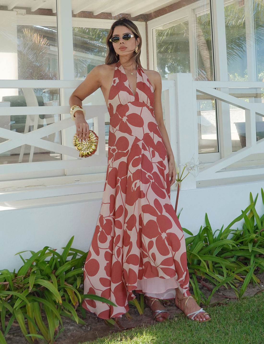 Vestido confeccionado em viscose estampada, tecido leve e fluido que garante conforto e movimento ao vestir.
